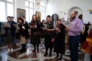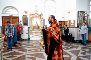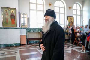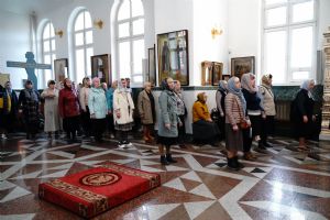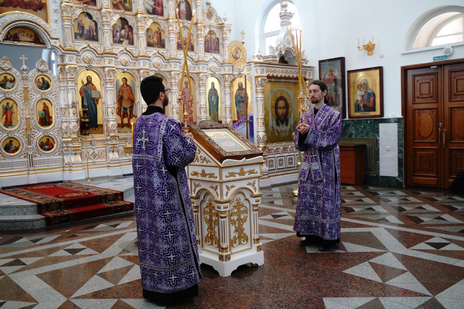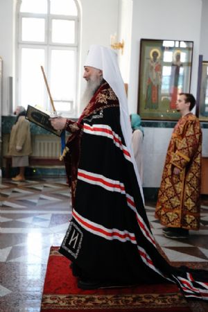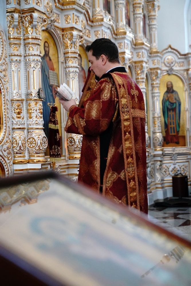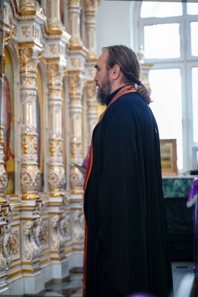 Владыке сослужили секретарь Йошкар-Олинского епархиального управления иеромонах Серафим (Пасанаев), клирики собора и протодиакон Михаил Козловский. Песнопения исполнял хор собора под управлением регента Алисы Вылегжаниной.