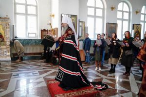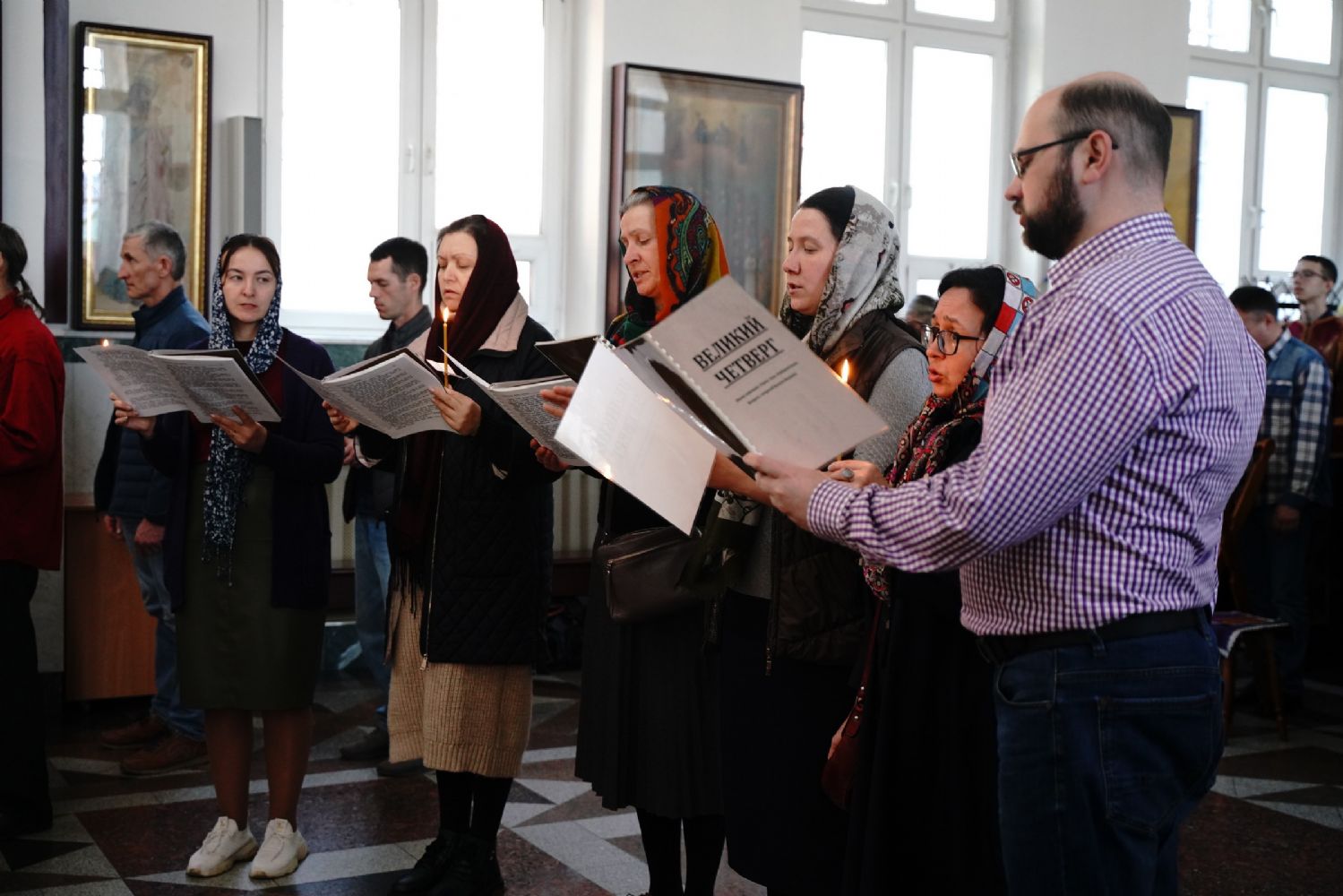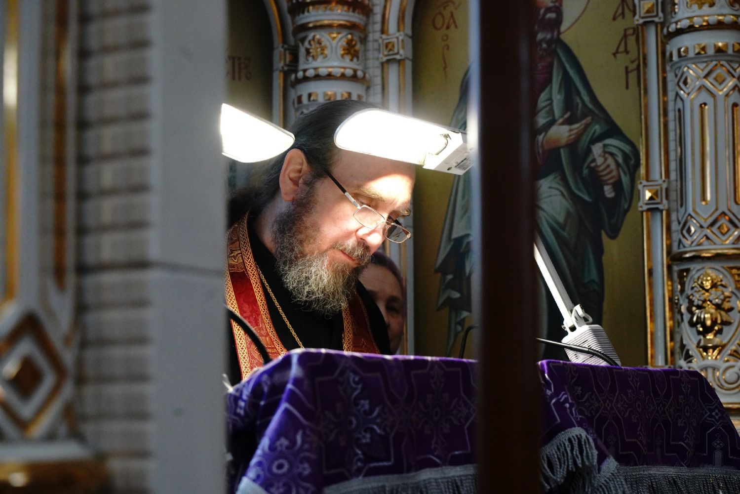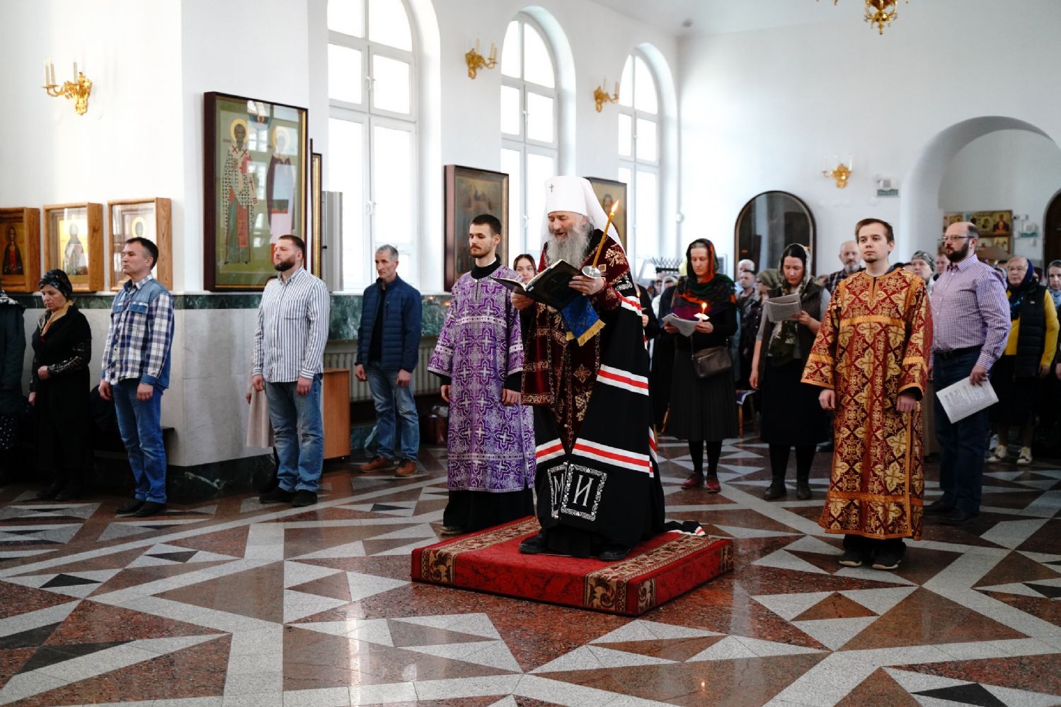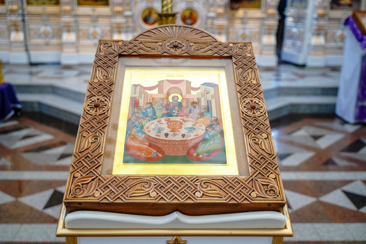 На малом повечерии в центре храма митрополит Иоанн прочитал трипеснец из канона преподобного Андрея Критского, посвященный воспоминанию Тайной Вечери и предательству Иуды.