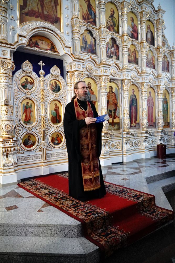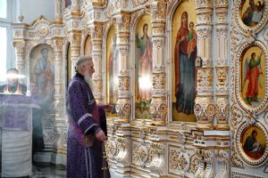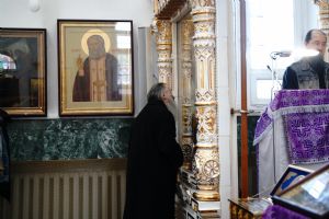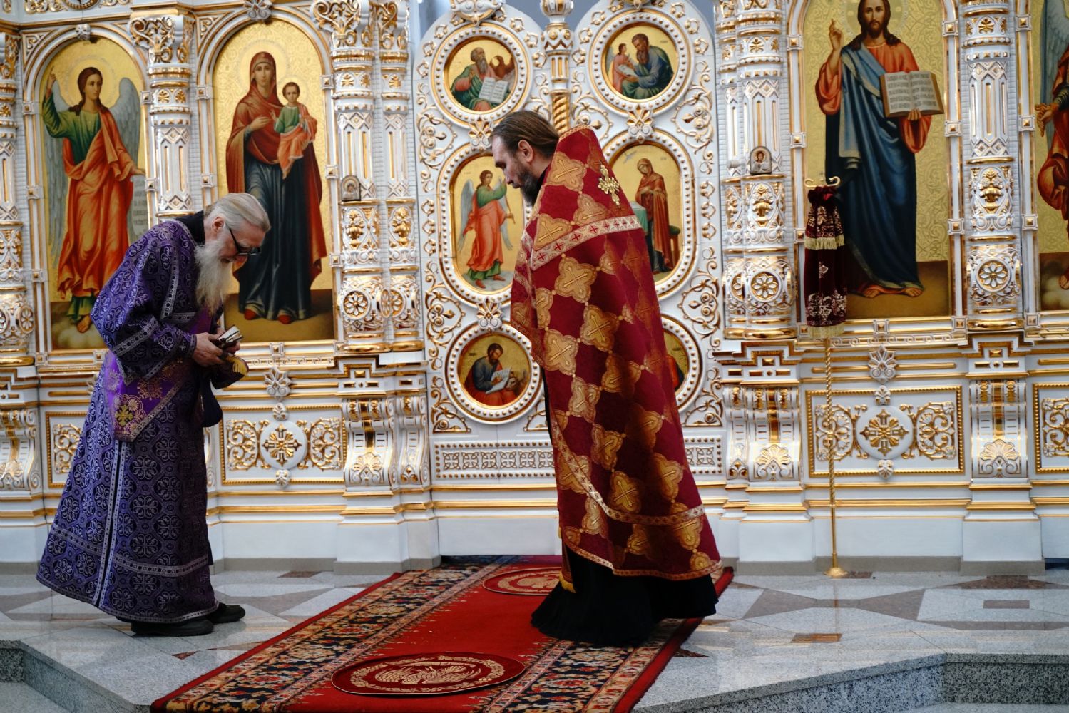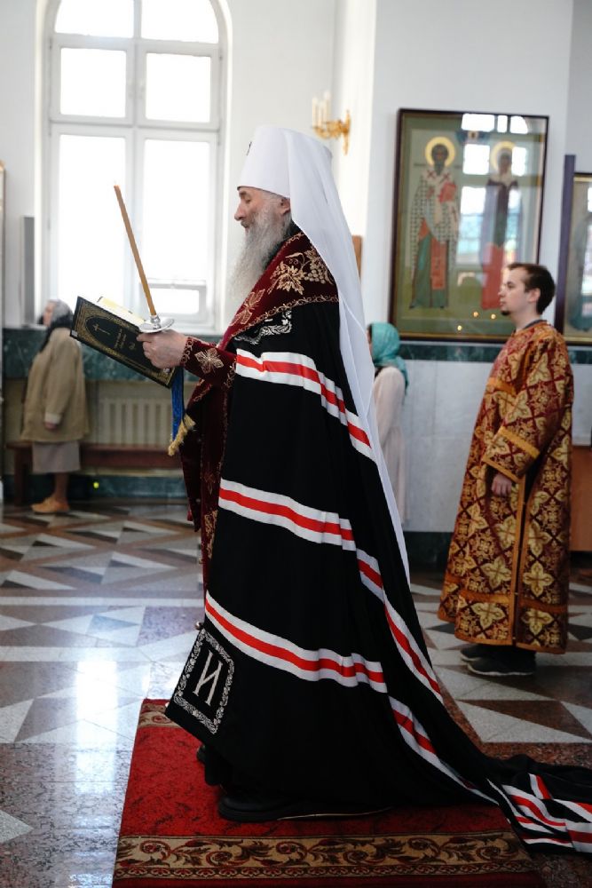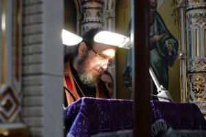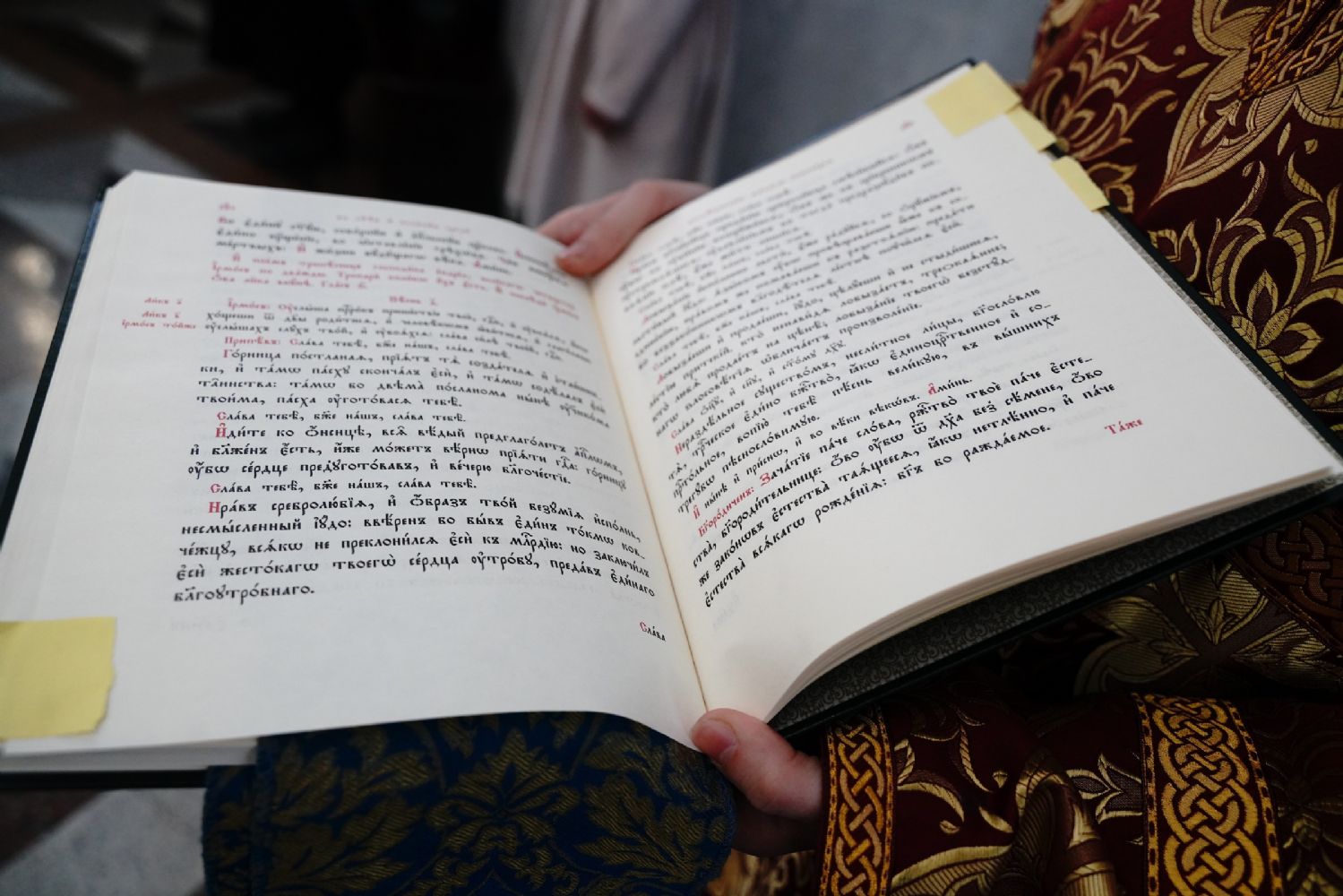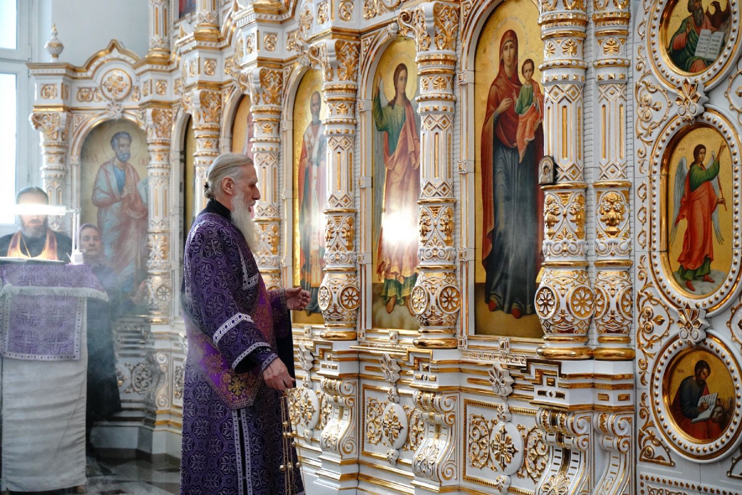 На малом повечерии в центре храма митрополит Иоанн прочитал трипеснец из канона преподобного Андрея Критского, посвященный воспоминанию Тайной Вечери и предательству Иуды.