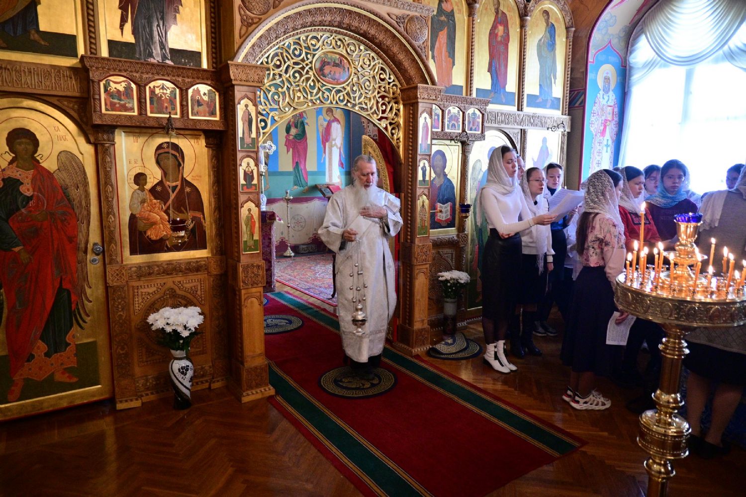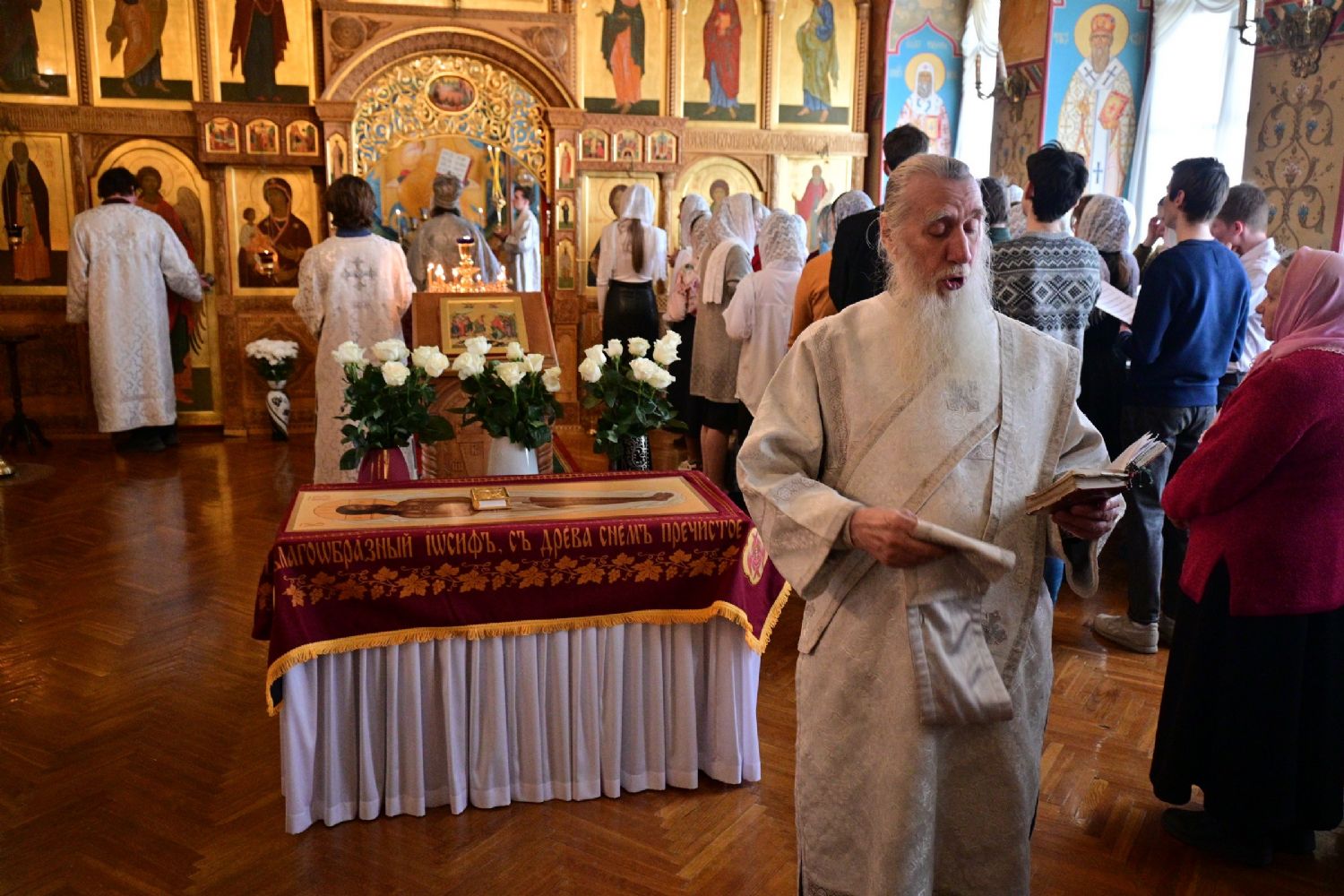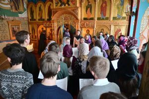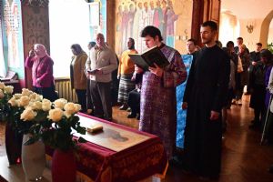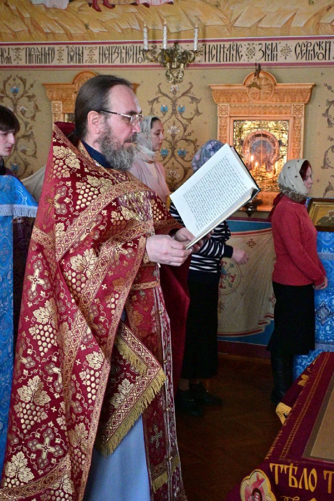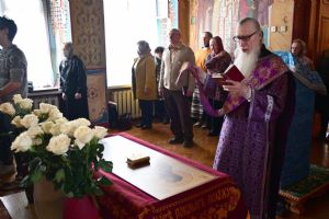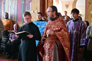 Владыке сослужили секретарь Йошкар-Олинского епархиального управления иеромонах Серафим (Пасанаев) и протодиакон Михаил Козловский. Песнопения исполнял хор «Благовест» под руководством регента Татьяны Черновой.
