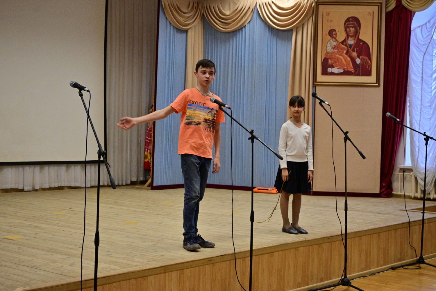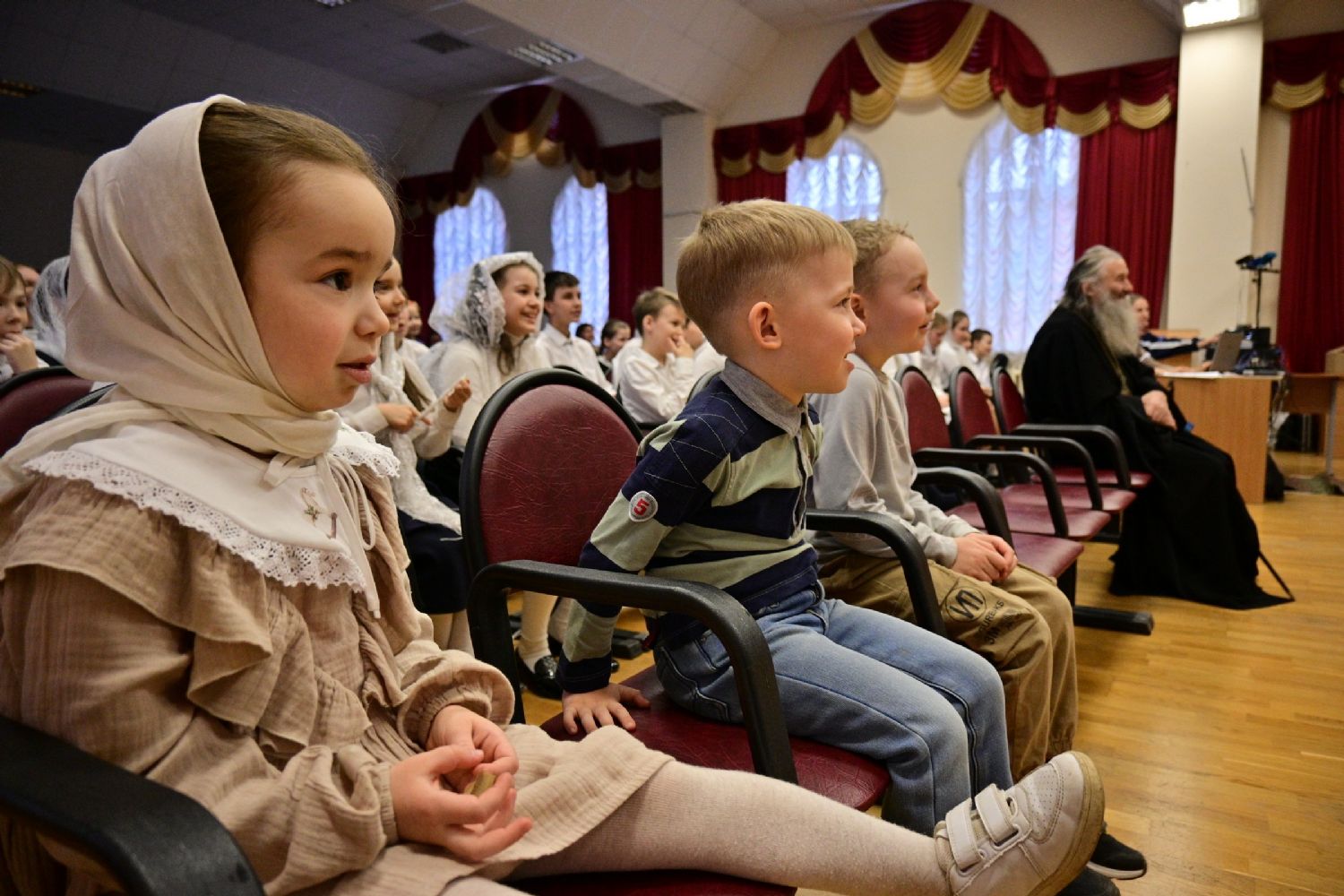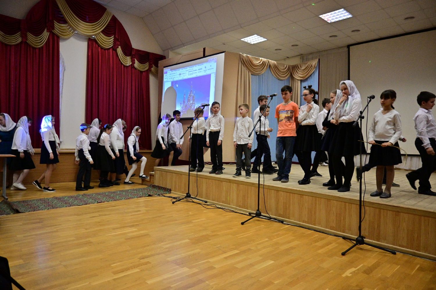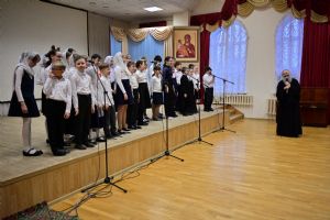 В актовом зале собрались хористы, их родственники и друзья, гости. Все вместе пропели тропарь Пасхи, и начался праздничный концерт. Помимо стихов и песен, ребята порадовали зрителей сказочным представлением, героям которого, как и всем людям приходится приходится делать выбор между добром и злом, бороться с искушениями, преодолевать свою гордость... Но, с Божией помощью, им удается найти правильный путь.