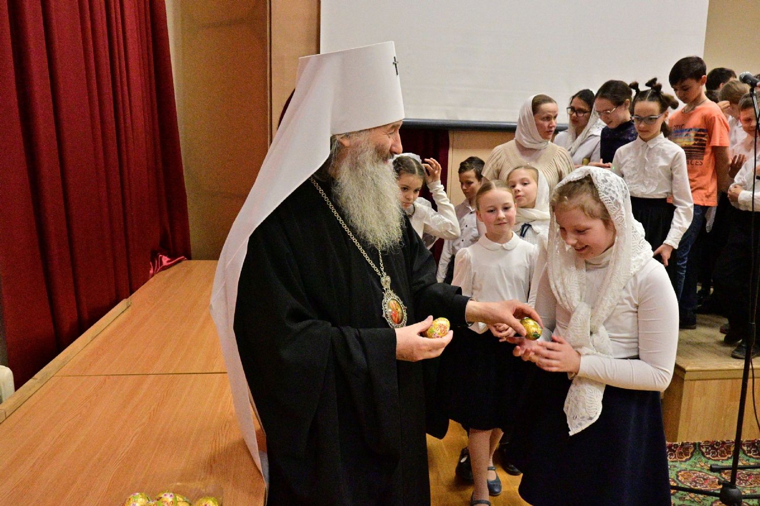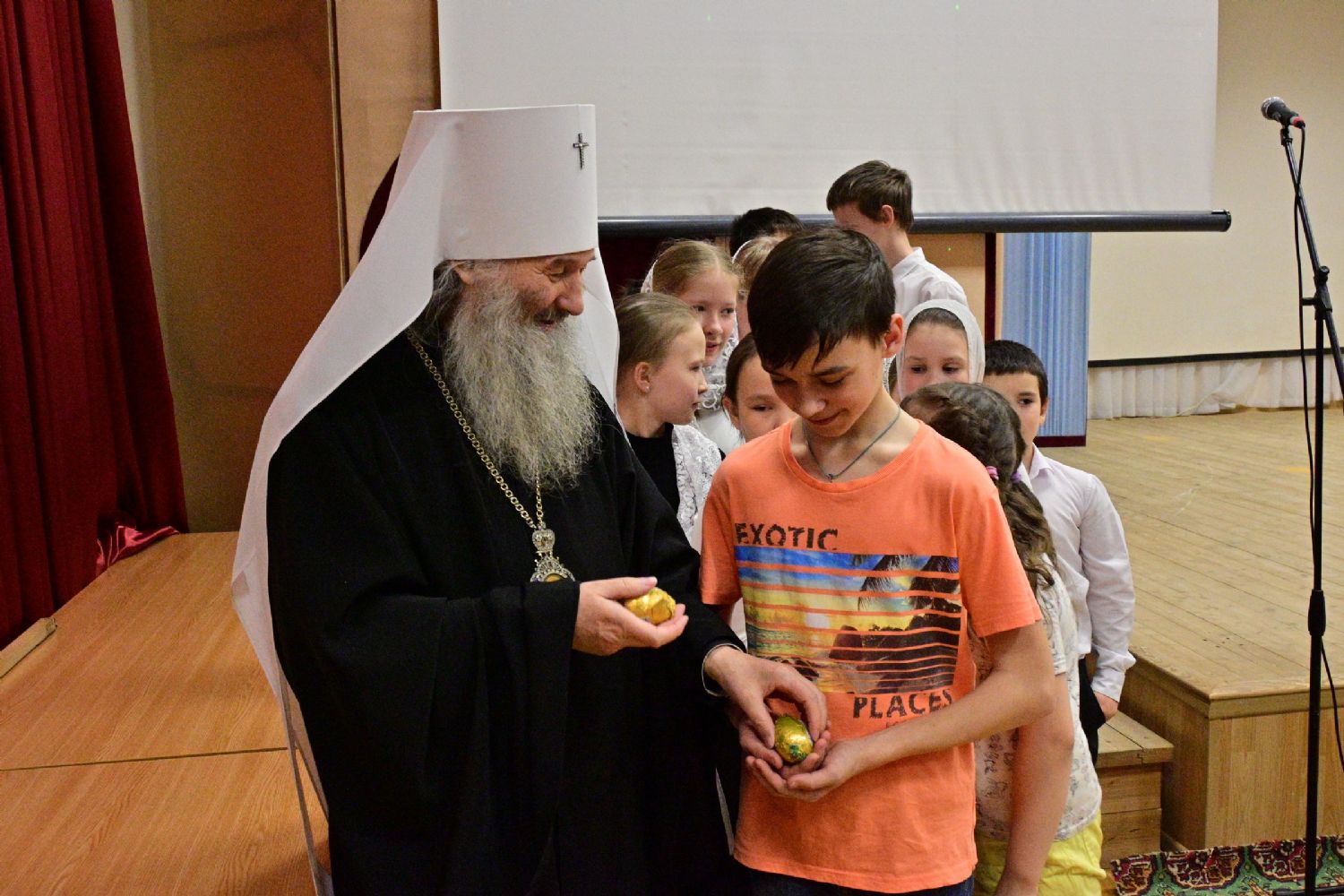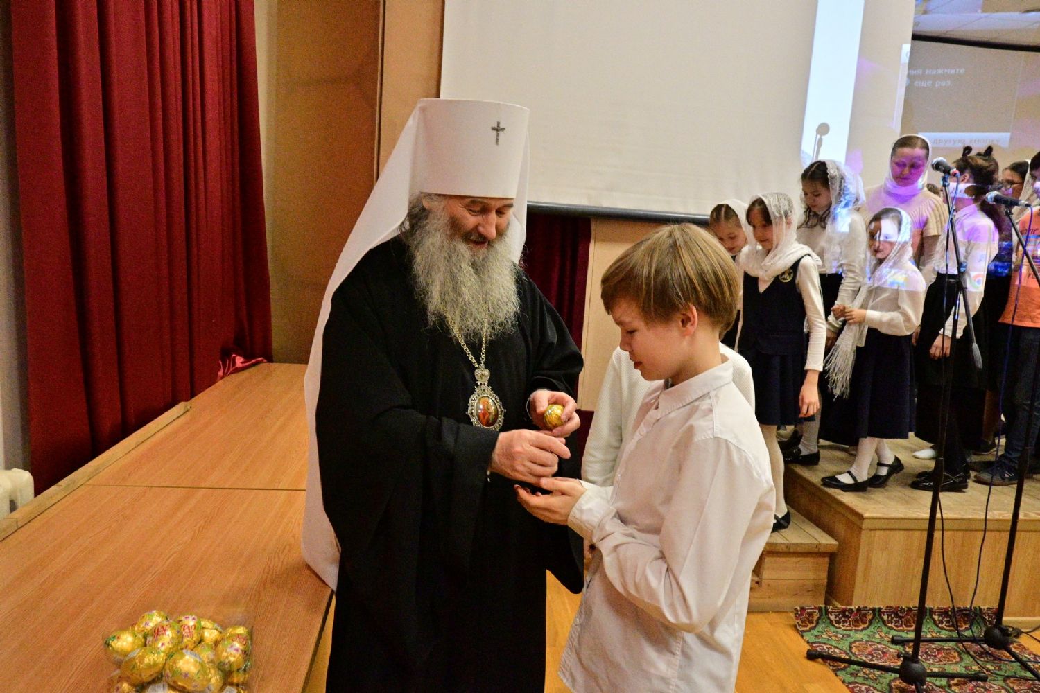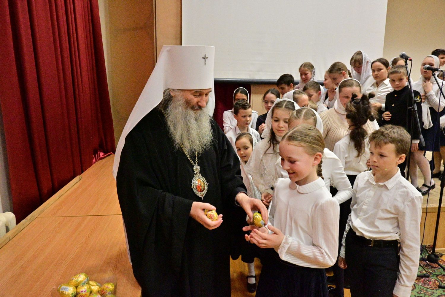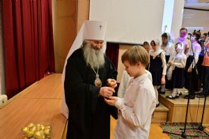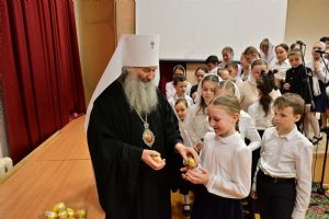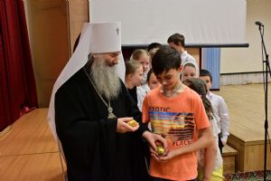 Митрополит Иоанн еще раз поздравил всех с праздником Светлой Пасхи и вручил ребятам сладкие подарки.
