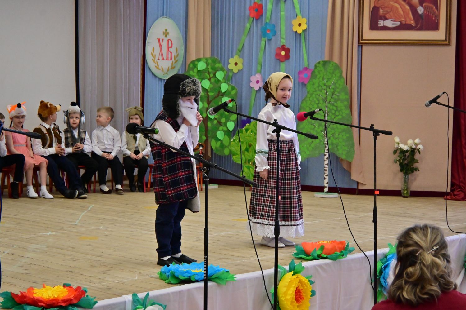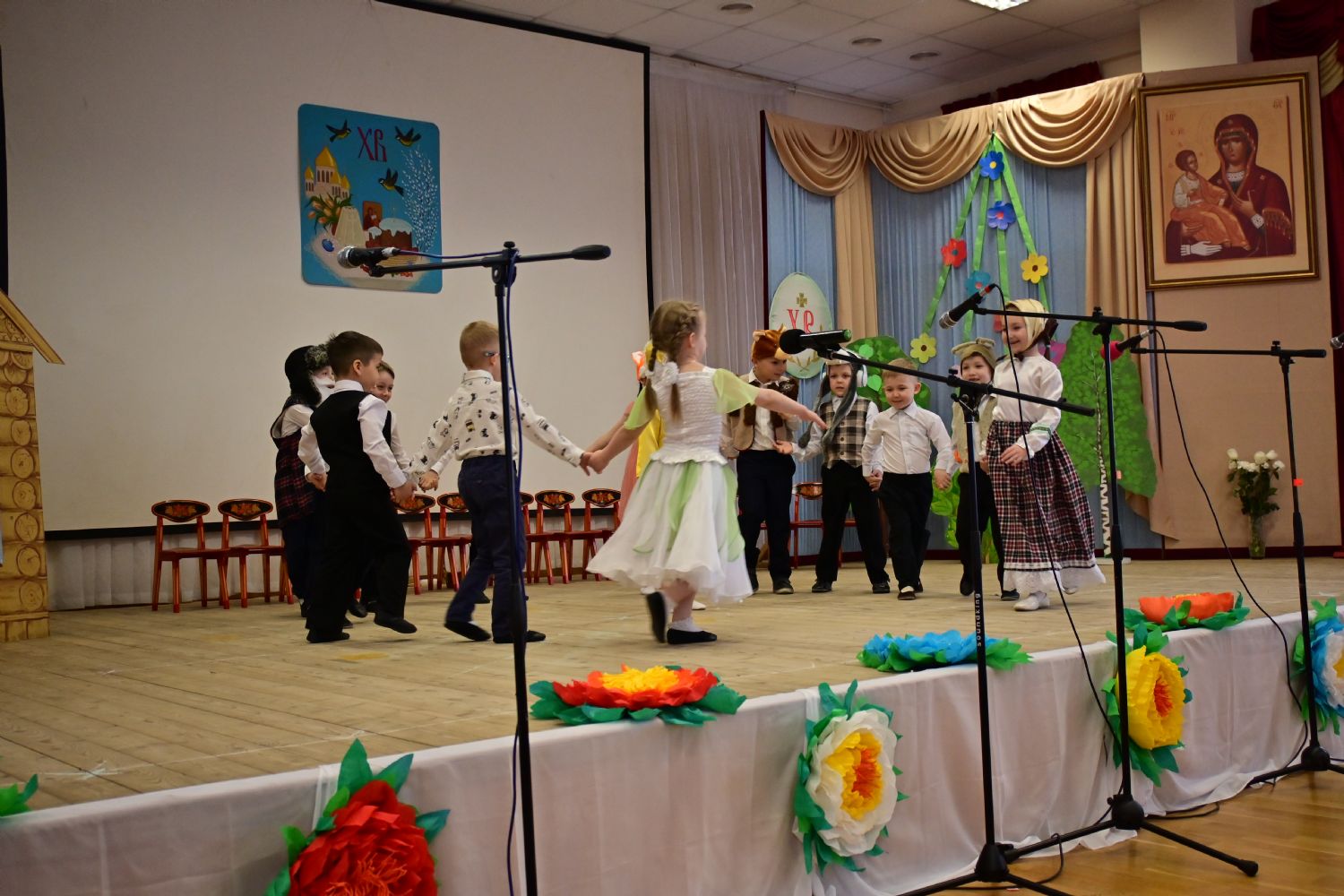 Концерт открылся выступлением младшей группы – дети подготовили пасхальные песни и стихи. Ребята постарше показали праздничную сценку, выступили с танцами и песнями, прославляя Воскресшего Христа. В зале царила теплая семейная атмосфера, через свои искренние выступления дети смогли передать радостное настроение и взрослым.