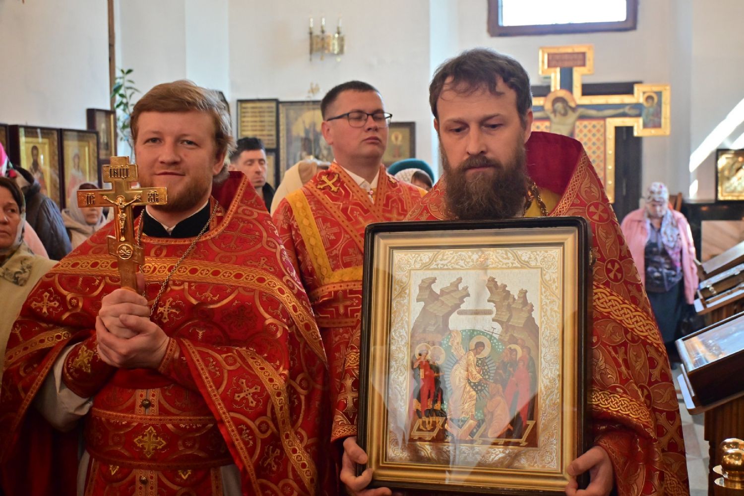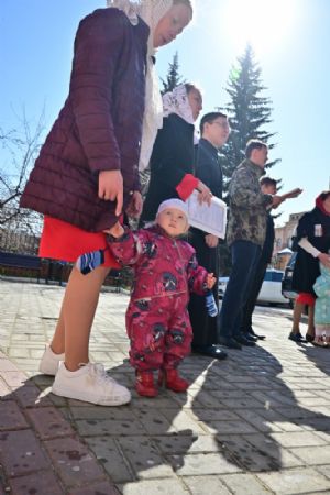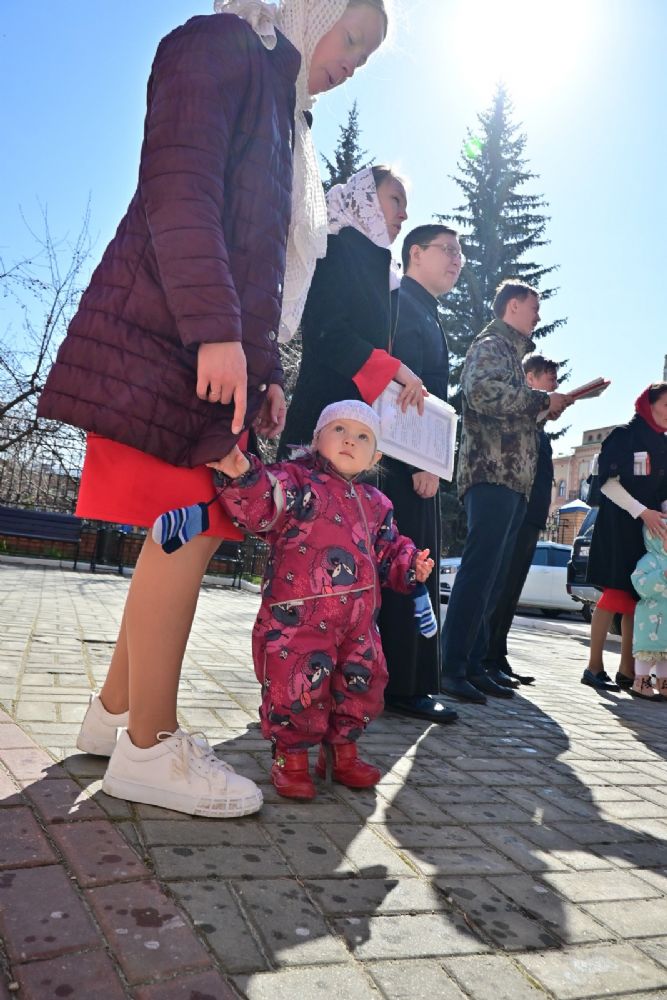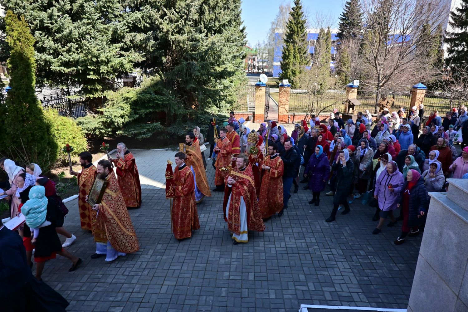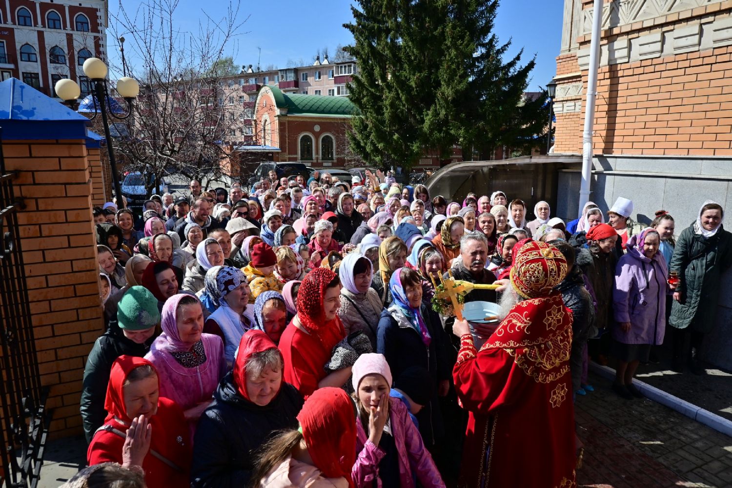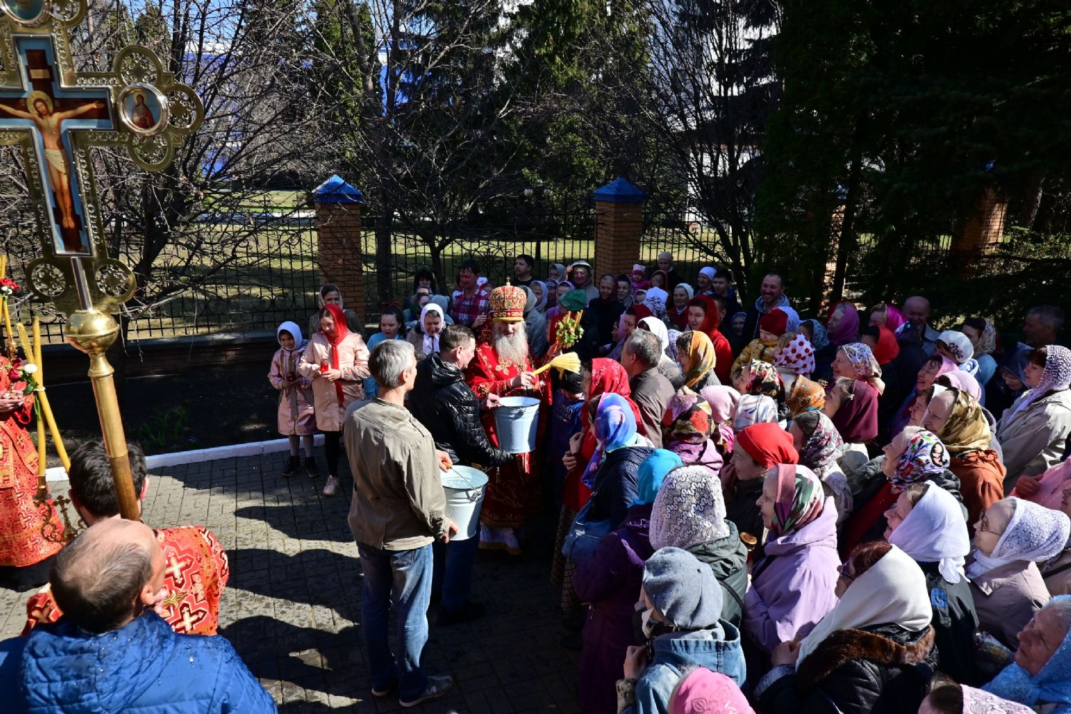 После Литургии был совершен крестный ход вокруг храма со чтением Евангелия и кроплением святой водой. Затем владыка прочитал молитву на раздробление артоса и обратился к верующим с архипастырским словом, пожелав сохранять пасхальную радость в сердцах во все дни.