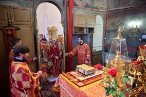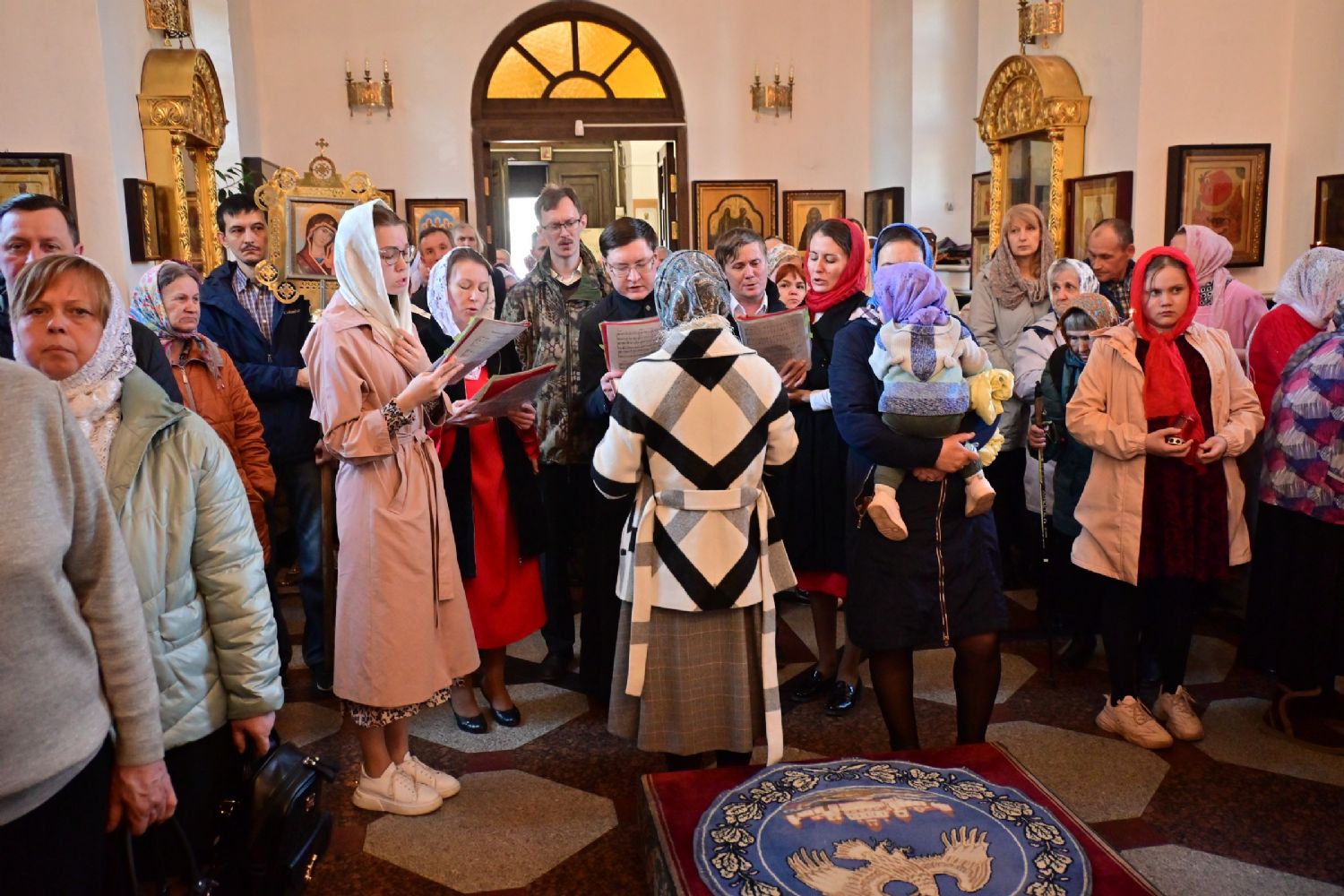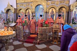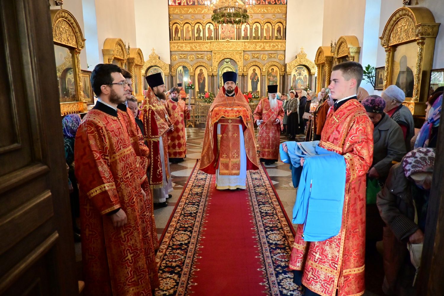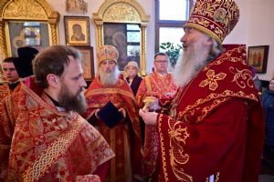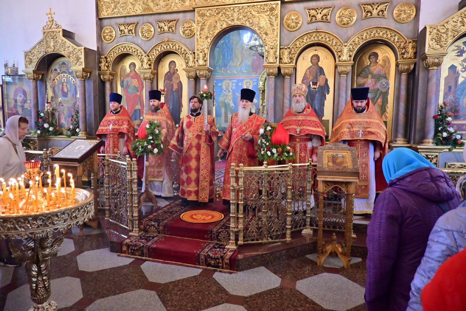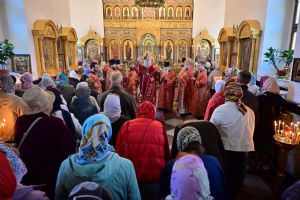 Его Высокопреосвященству сослужили настоятель храма протоиерей Сергий Филонов, клирики храма иерей Никита Иванов, иерей Вячеслав Булычев, диакон Александр Мельников, клирик храма Державной иконы Божией Матери п. Медведево иерей Алексий Добиков и протодиакон Михаил Козловский. Песнопения исполнял хор Успенского храма под управлением регента Ольги Акилбаевой.