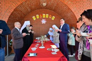 По всему периметру кремля раскинулись торговые ряды с изделиями народных промыслов, поделки воспитанников воскресных школ, православной литературой. Всех желающих сестры милосердия Йошкар-Олинской епархии угощали ароматной гречневой кашей с тушенкой и горячим чаем.
