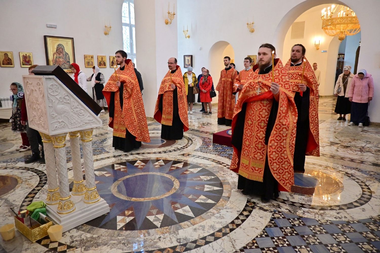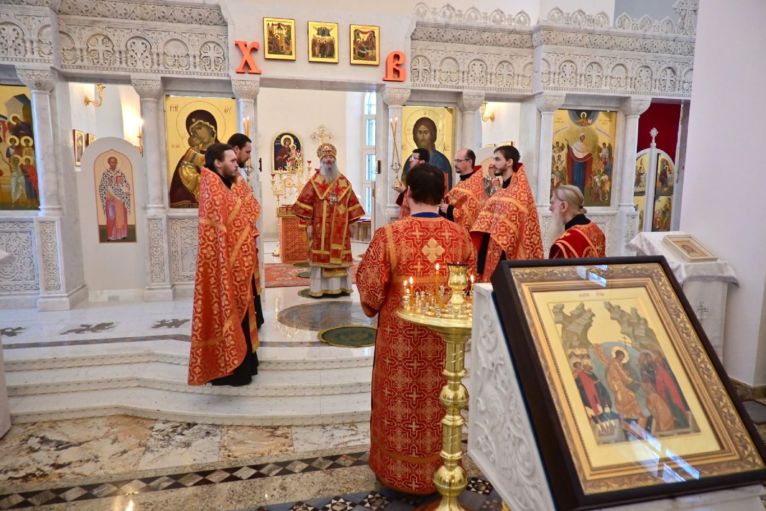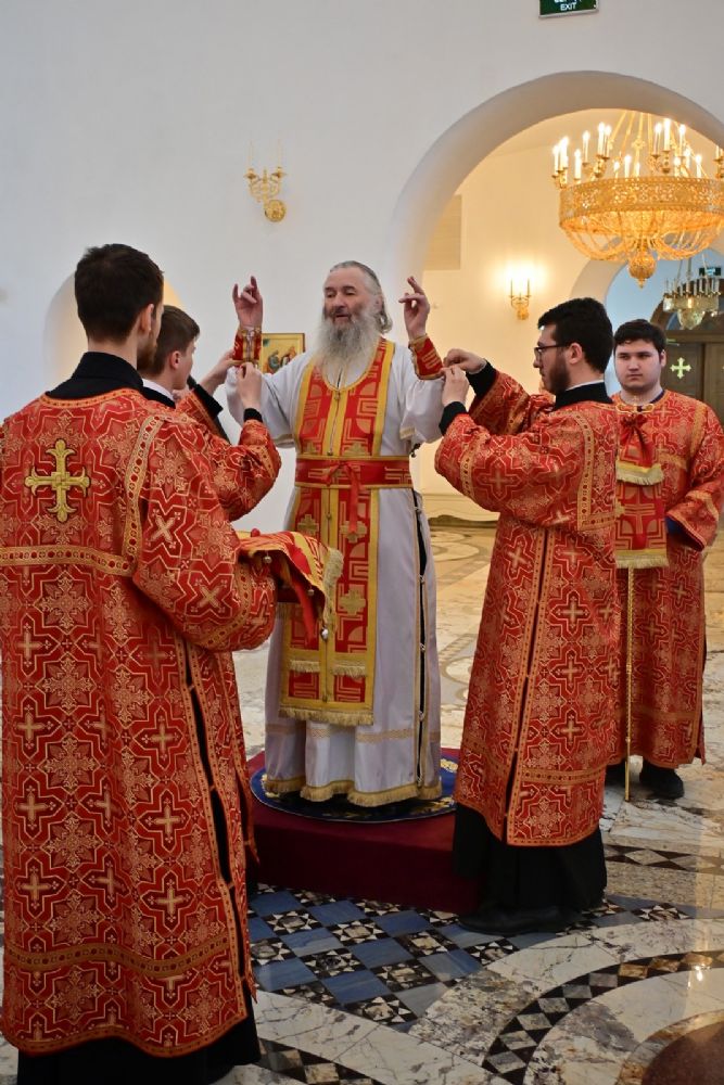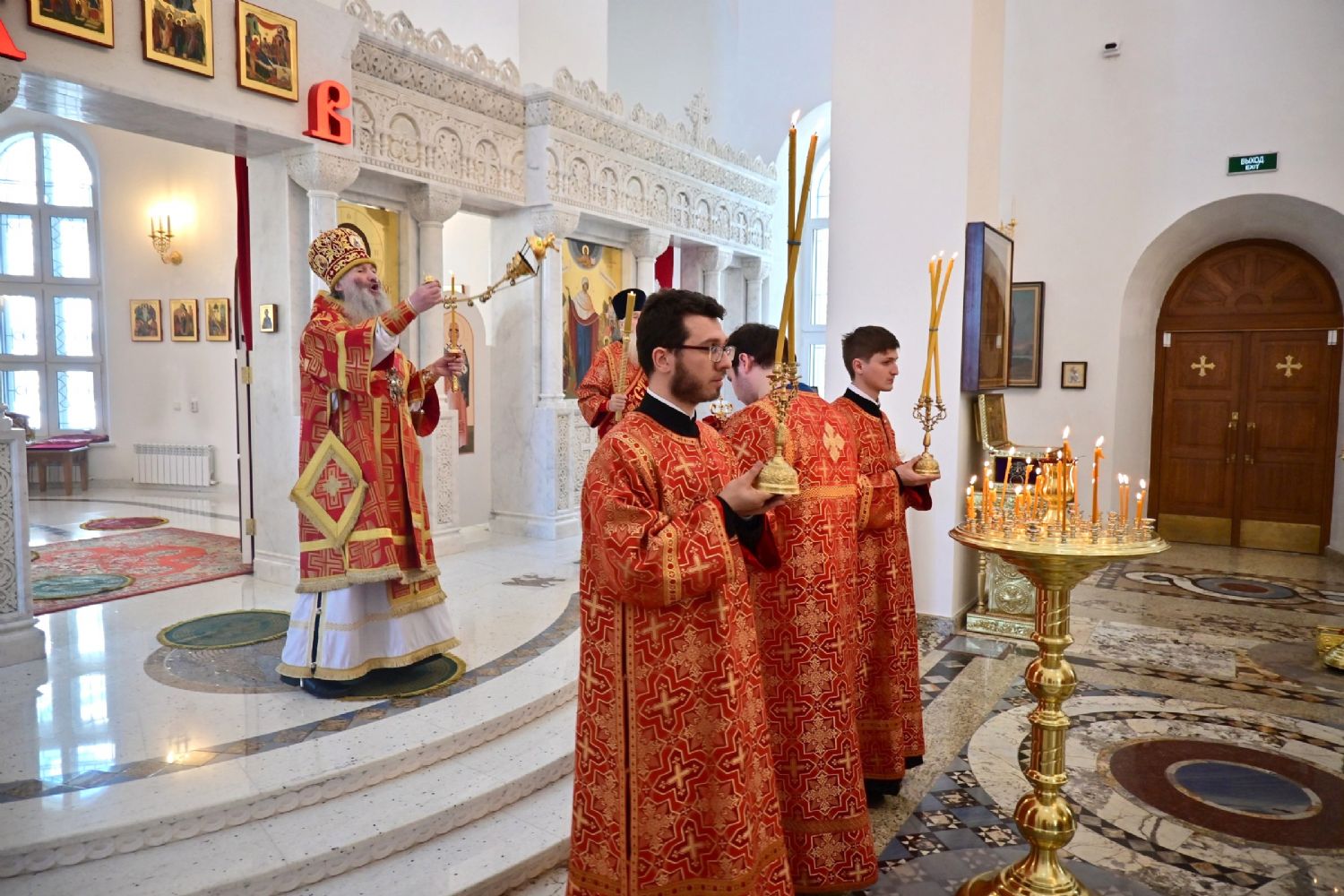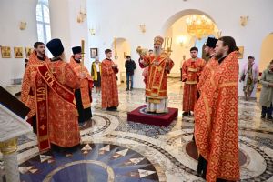 Владыке сослужили настоятель храма иерей Алексий Михеев, клирики храма иереи Игорь Коваль, Сергий Пуртов и Димитрий Лукьянов, а также протодиакон Михаил Козловский. Песнопения исполнял хор храма под управлением Александры Ивановой.