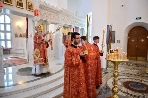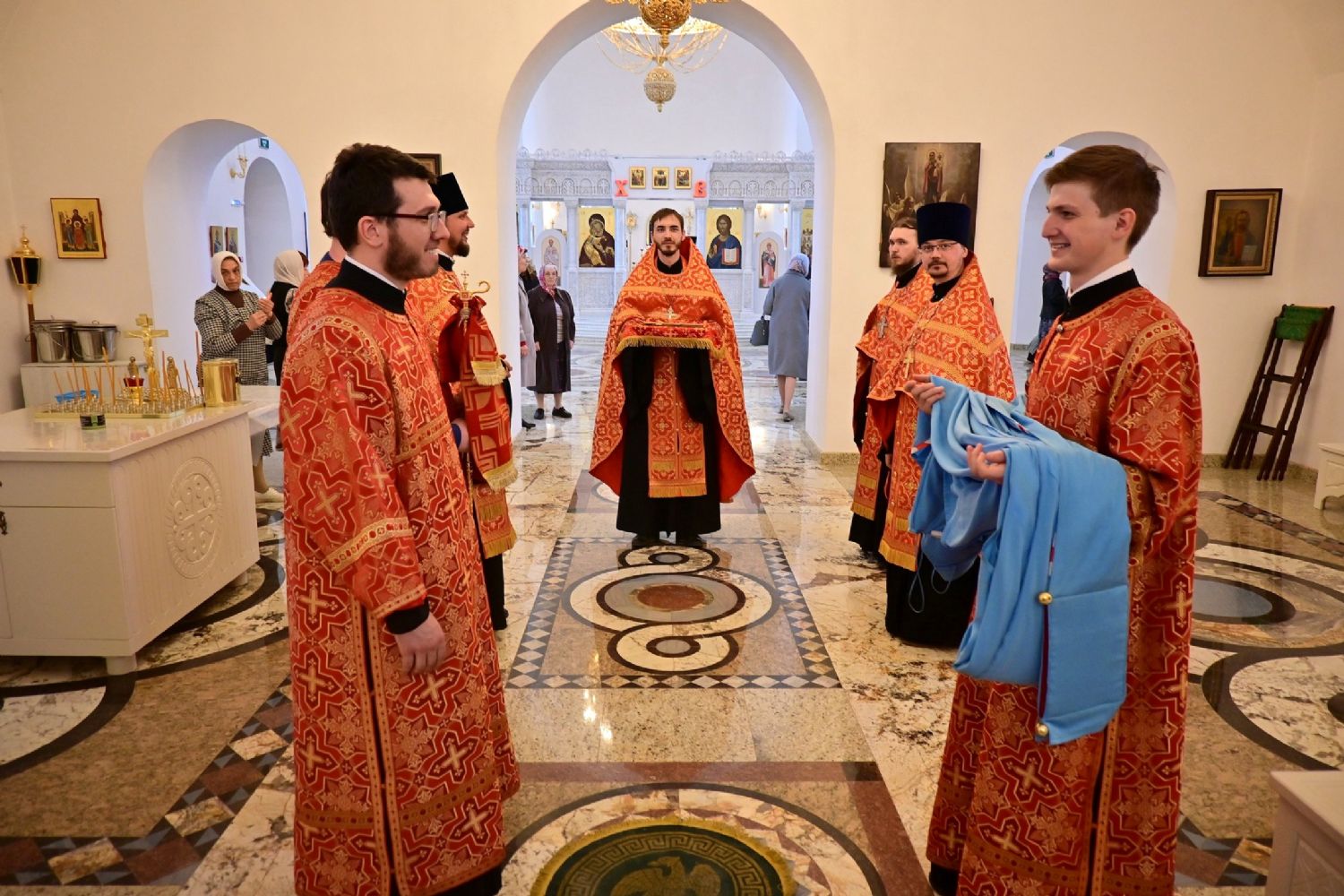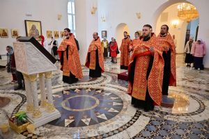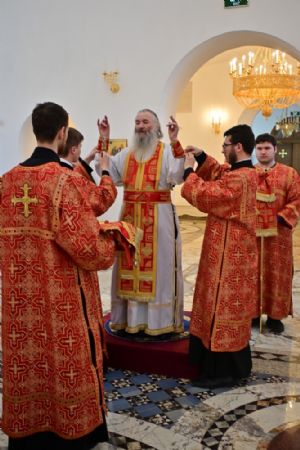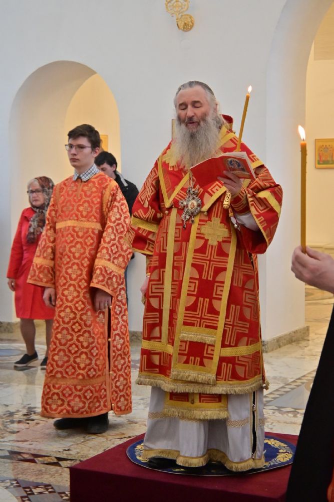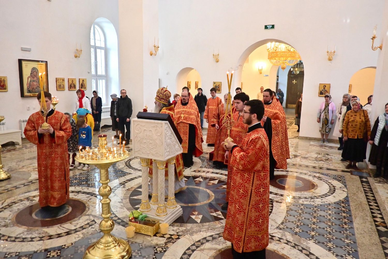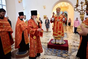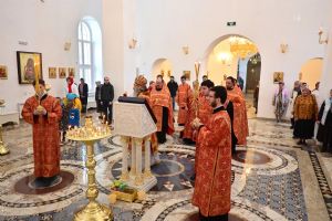 Владыке сослужили настоятель храма иерей Алексий Михеев, клирики храма иереи Игорь Коваль, Сергий Пуртов и Димитрий Лукьянов, а также протодиакон Михаил Козловский. Песнопения исполнял хор храма под управлением Александры Ивановой.