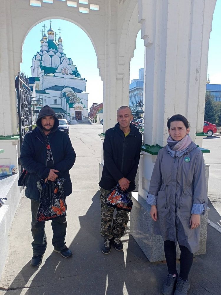 Не обошли православные добровольцы своим вниманием и категорию социально незащищенных людей. Они побывали в «Доме ночного пребывания» г. Йошкар-Олы, для постояльцев которого подготовили пасхальную сценку и вручили подарки. Также ребята объехали церкви города, поздравив с Воскресением Христовым людей, вынужденных просить милостыню, и подарили пакеты с наборами бытовой химии. Люди были очень рады – ведь для них это важная весточка, что они кому-то нужны и кто-то специально для них приготовил подарки.