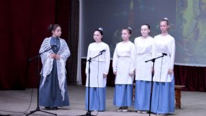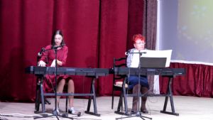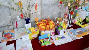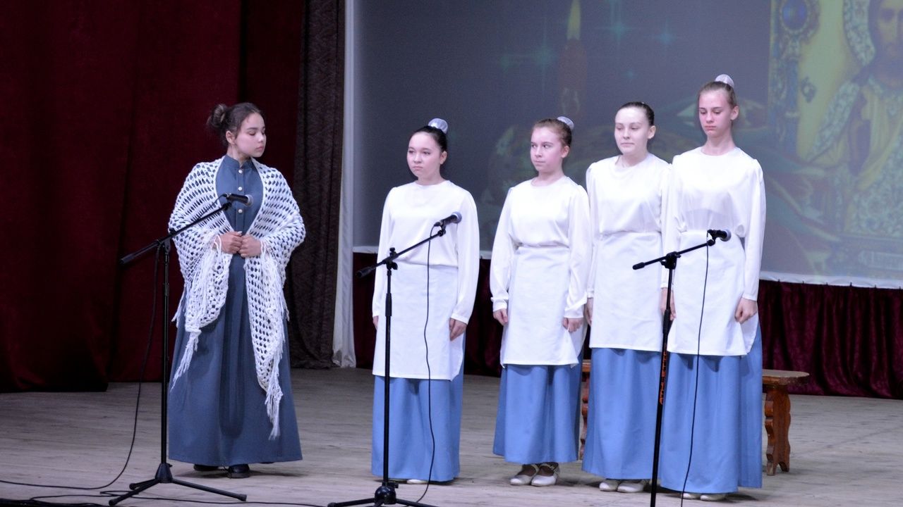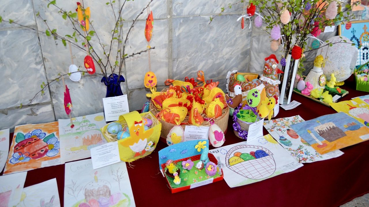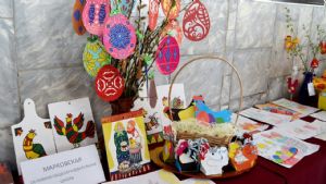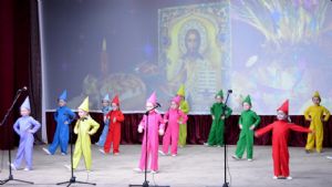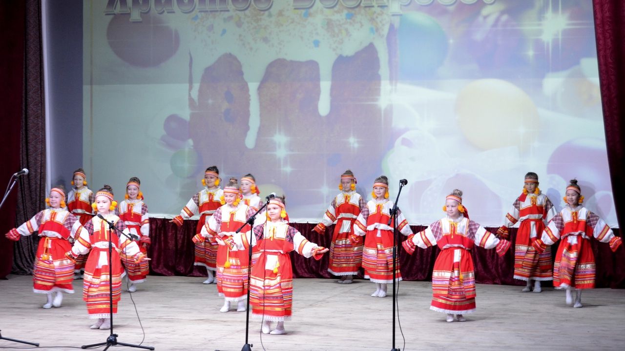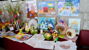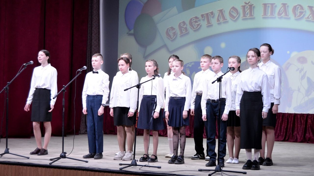 После праздничной Литургии в храме Рождества Иоанна Предтечи все желающие собрались в районном Центре культуры и досуга. В фойе была организована выставка детских рисунков и поделок на пасхальную тему. А к началу концертной части зал был полон зрителей.