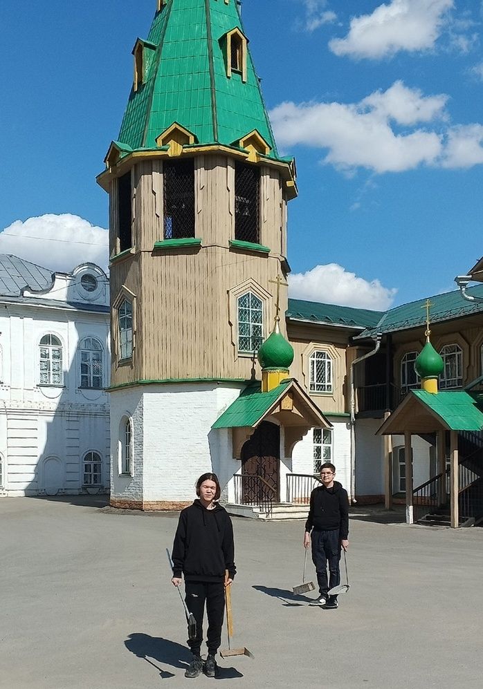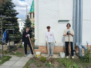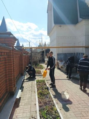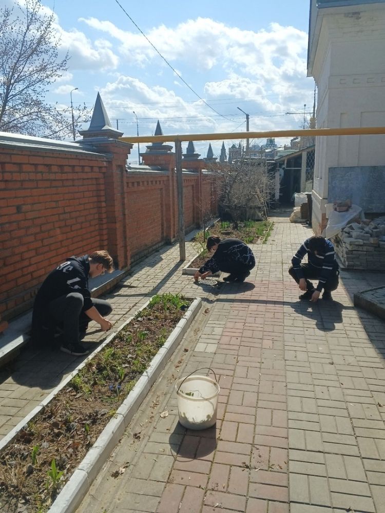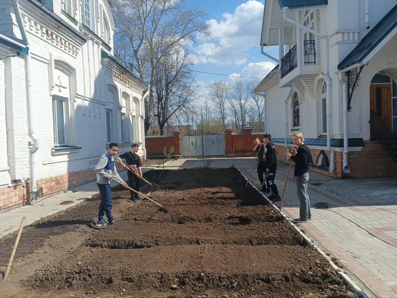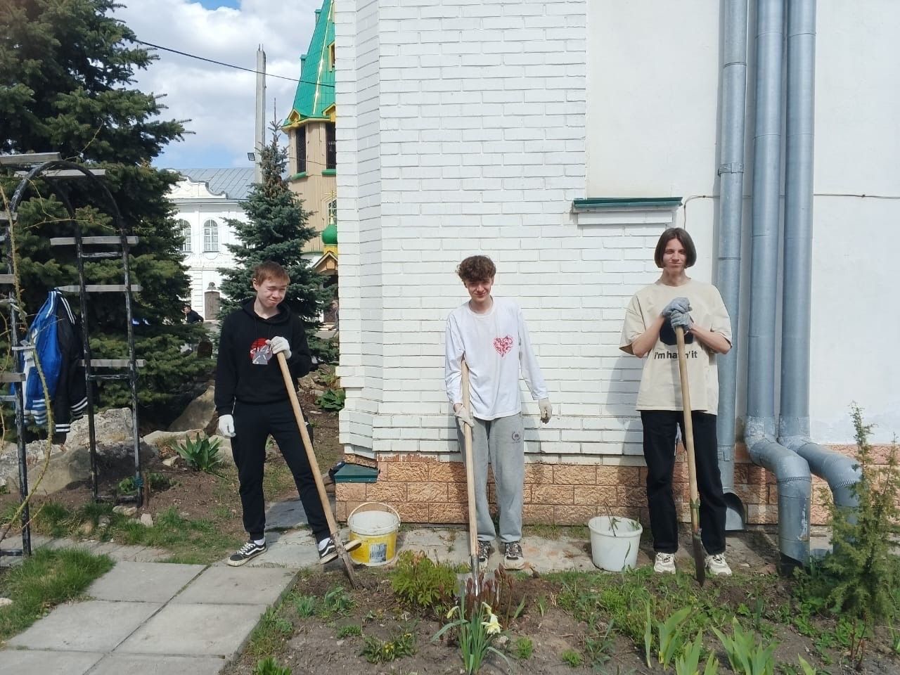 Неделя добра, объявленная руководством техникума, предполагает участие студентов в совершении благих дел – помощь в уборке общественных территорий, посещение социальных учреждений, проведение благотворительных акций. Четыре группы студентов под руководством преподавателя техникума Сергея Подоплелова решили оказать посильную помощь в благоустройстве территории собора – подмести двор, колокольню, вскопать грядки, очистить брусчатку от сорняков под руководством приходского социального работника Людмилы Кичкиной.