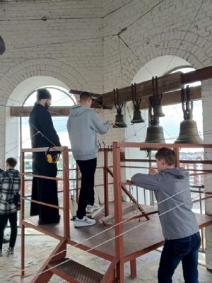 В завершение, поблагодарив ребят за проделанную работу, чтец Григорий Михеев провел для студентов мастер-класс по колокольному звону и в ходе небольшой экскурсии познакомил желающих с историей храма и интерьерами собора. Посещение собора и посильный труд на территории храма оставили добрые впечатления как у студентов, так и у постоянных прихожан, с радостью наблюдавших за усердием молодого поколения.