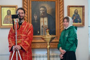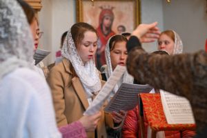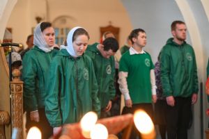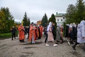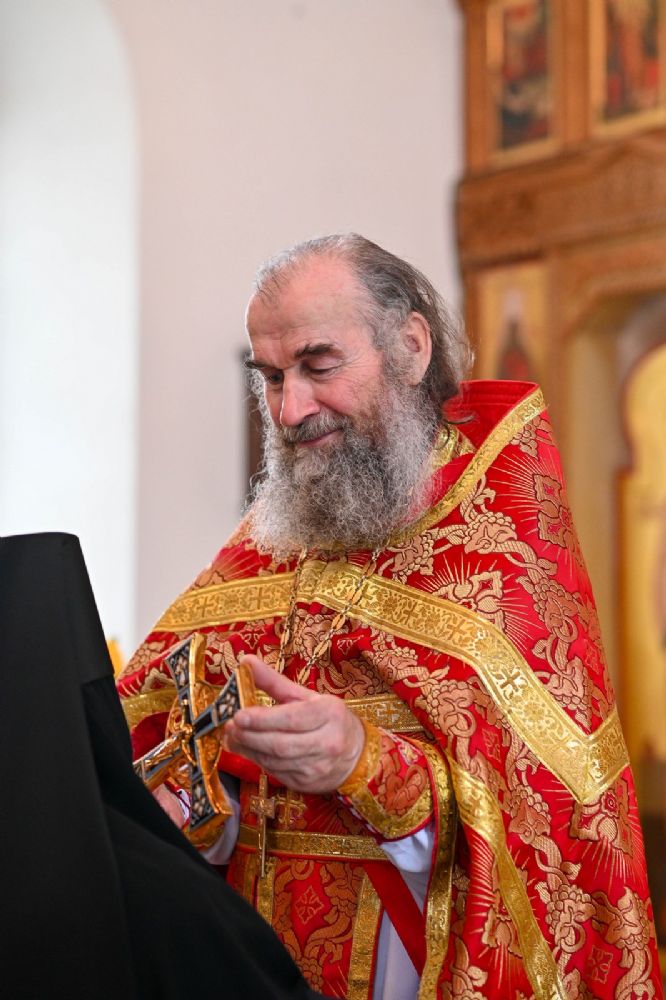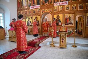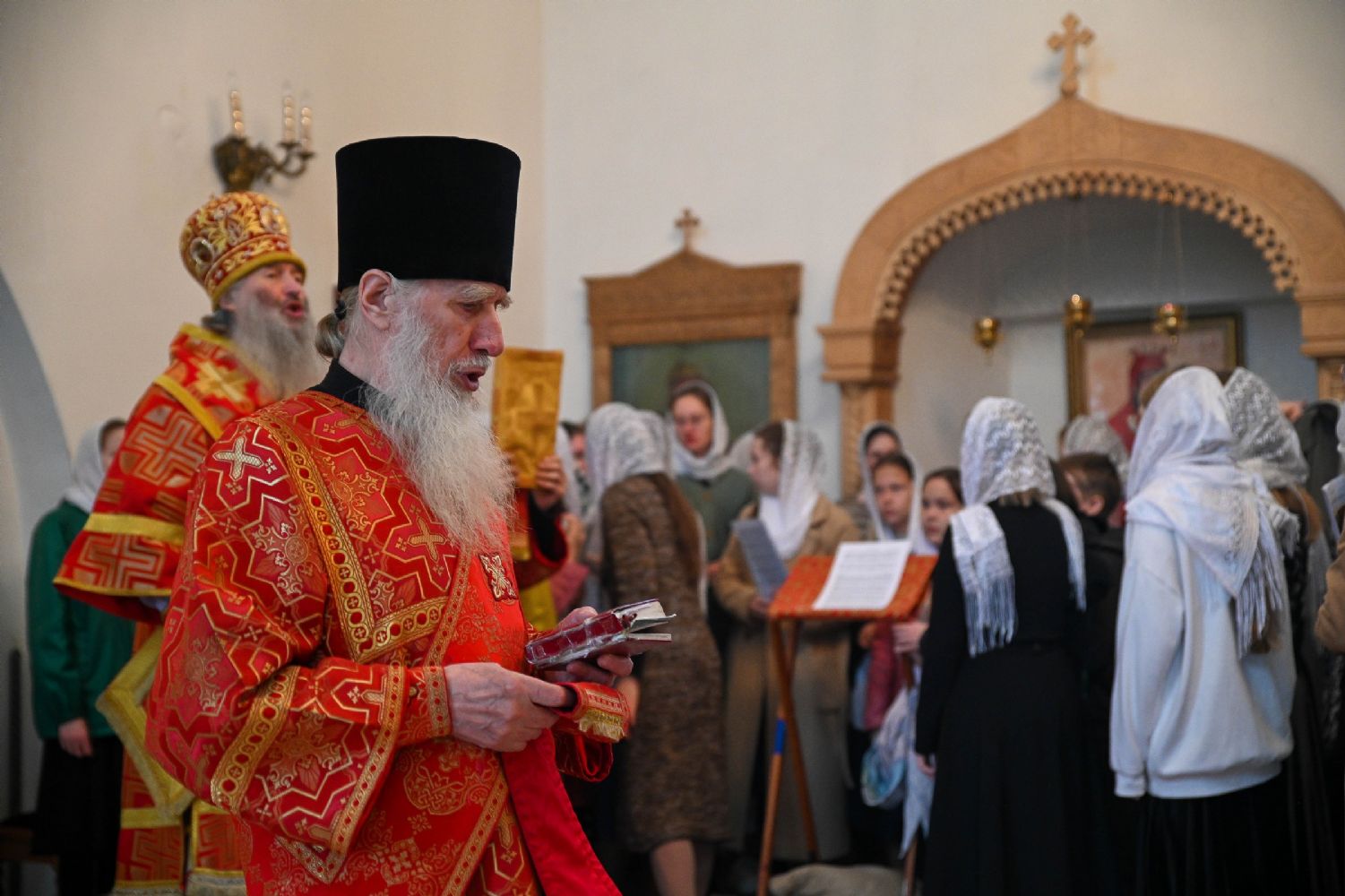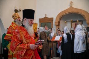 Владыке сослужили секретарь Йошкар-Олинского епархиального управления иеромонах Серафим (Пасанаев), клирик монастыря иерей Михаил Лежнин и протодиакон Михаил Козловский. Песнопения исполнял детско-юношеский хор «Благовест» под управлением регента Татьяны Черновой.
