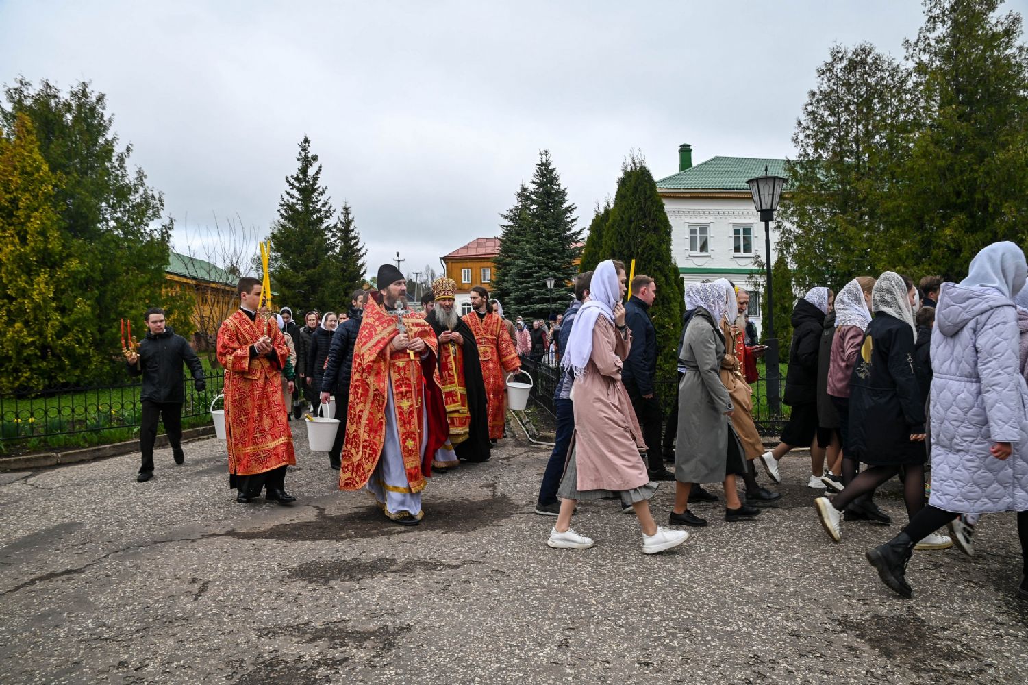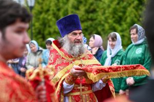 После Литургии верующие прошли крестным ходом до часовни с источником, где был совершен чин малого освящения воды. Затем владыка обратился к собравшимся с архипастырским словом, поздравив всех с праздником и подчеркнув, что святые Жены Мироносицы показали пример, как сердце наше должно любить Господа, чтобы ничто не могло нас разлучить от любви к Сладчайшему Спасителю.