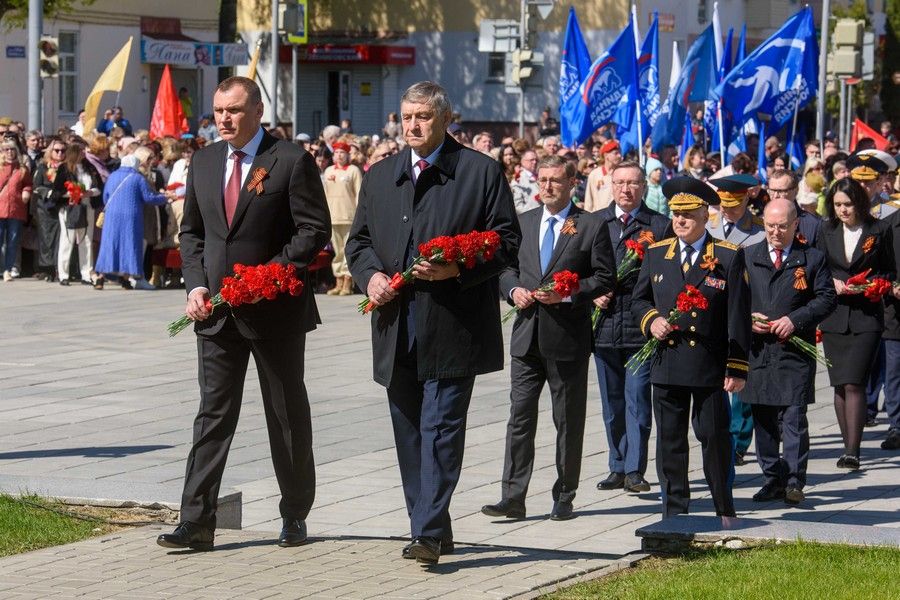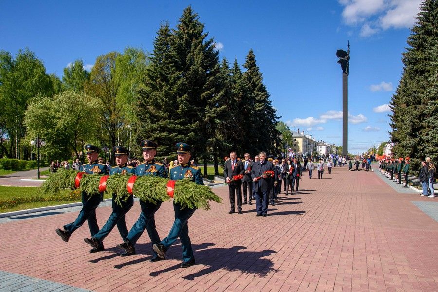 С утра у мемориала Воинской Славы состоялся торжественный митинг с возложением цветов к мемориалу и Вечному огню.