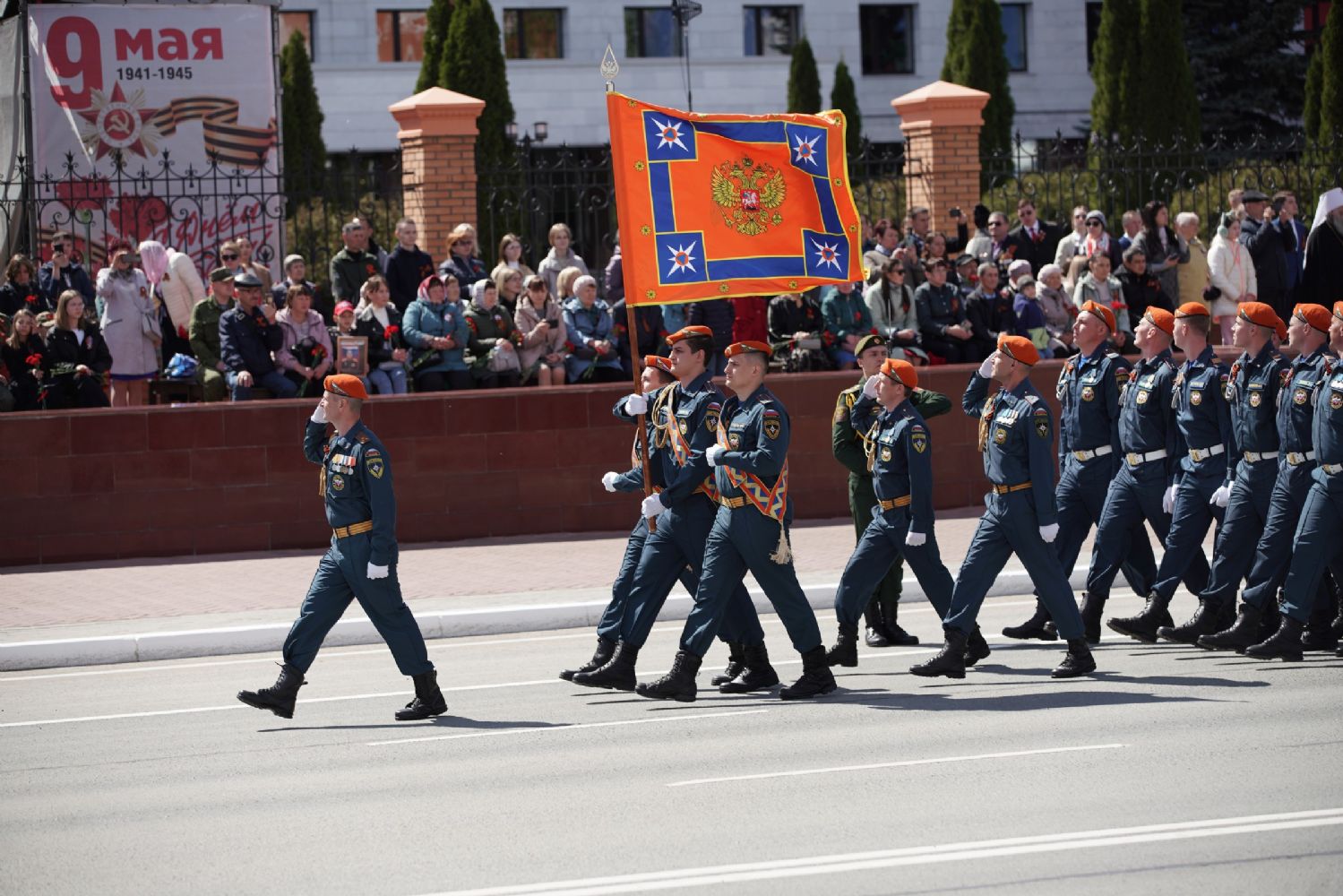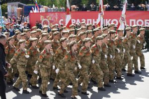 Торжественным маршем по главной улице города – проспекту Ленина прошли военнослужащие, представители силовых структур, кадеты и юнармейцы. Далее на парад выехала военная техника – было представлено как вооружение Великой Отечественной войны, так и современные образцы мощной и высокотехнологичной военной техники.