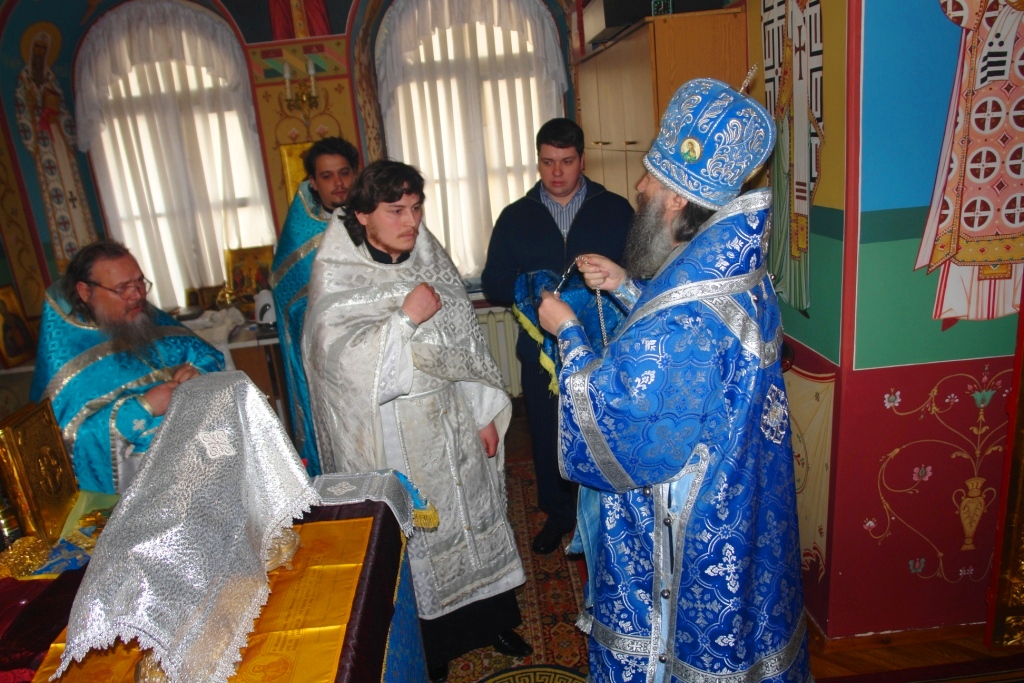 За богослужением были совершены хиротонии в диаконскую и иерейскую степень священства. В диакона был рукоположен Николай Бабич. Он будет проходить сорокоуст в храме прп. Серафима Саровского в микрорайоне Дубки. В иерейский сан Владыка рукоположил клирика уже упомянутого храма прп. Серафима диакона Алексия Семенова. Отец Алексий направлен на прохождении сорокоуста в Успенский храм г. Йошкар-Олы.
