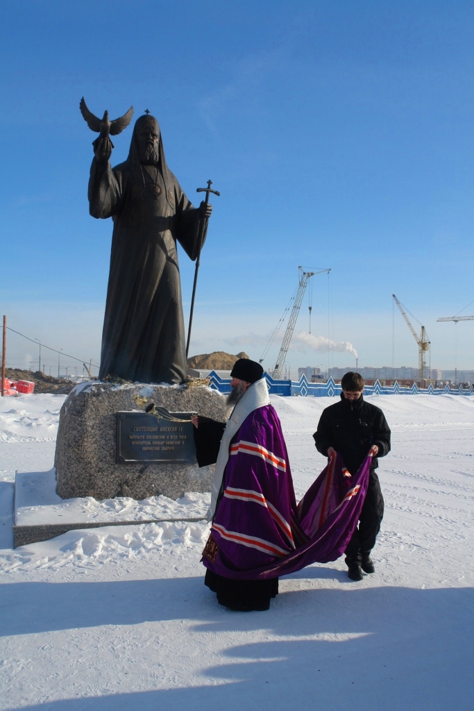 Почти сразу после литургии была совершена Владыкой заупокойная лития по присно поминаемому почившему Патриарху Алексию II, у его памятника на строящейся набережной города. Стало доброй традицией чтить память Патриарха на этом месте в день его кончины и тезоименитства.