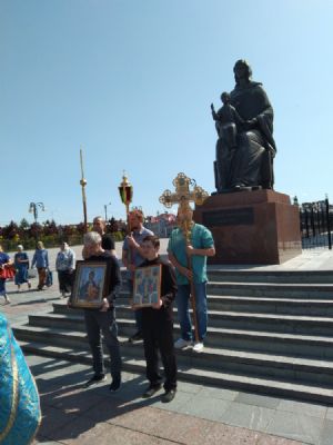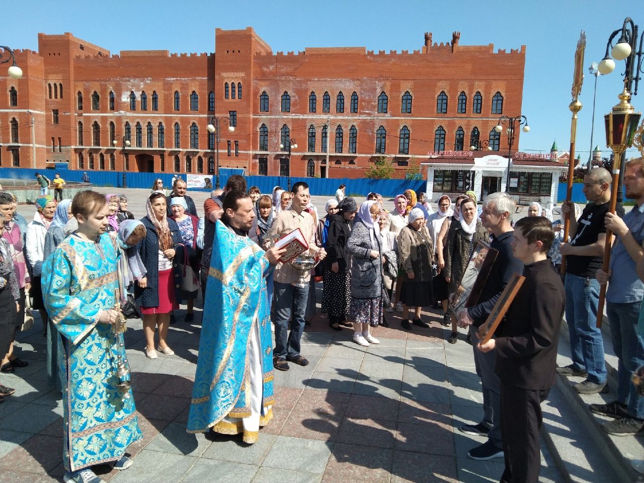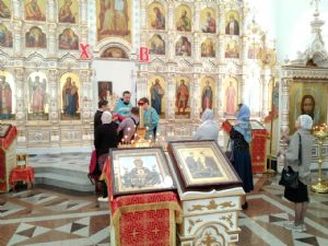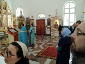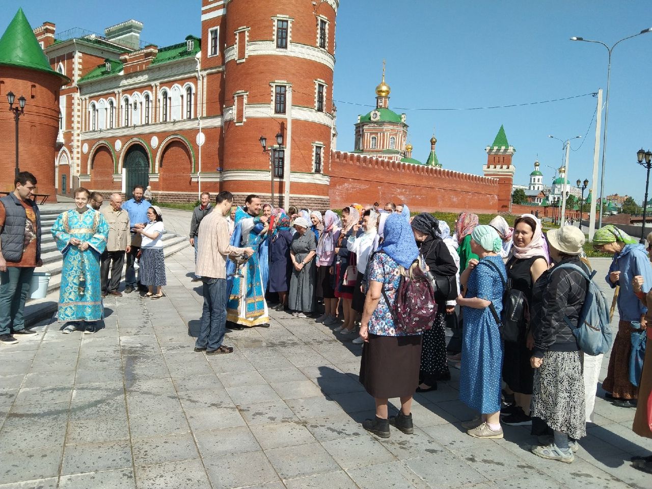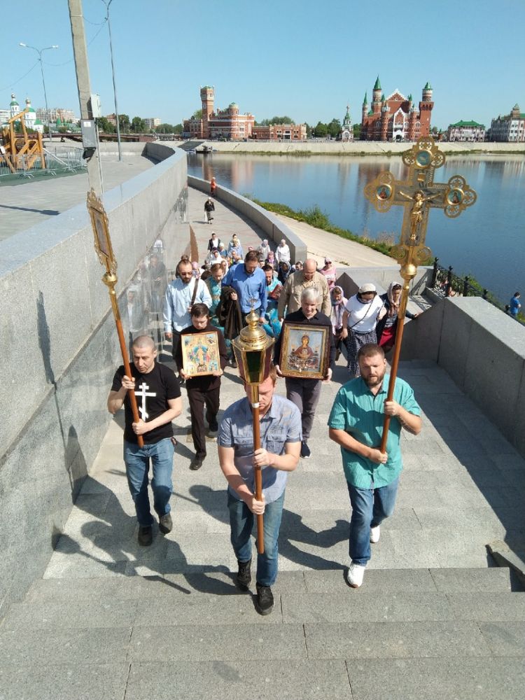 После Литургии был совершен водосвятный молебен с особыми прошениями о страждущих недугами винопития, наркомании, табакокурения и игромании. Верующие с иконой «Неупиваемая Чаша» прошли крестным ходом по набережной реки Кокшага, затем пропели тропарь и вознесли молитву Пречистой Богоматери перед Ее празднуемым образом.
