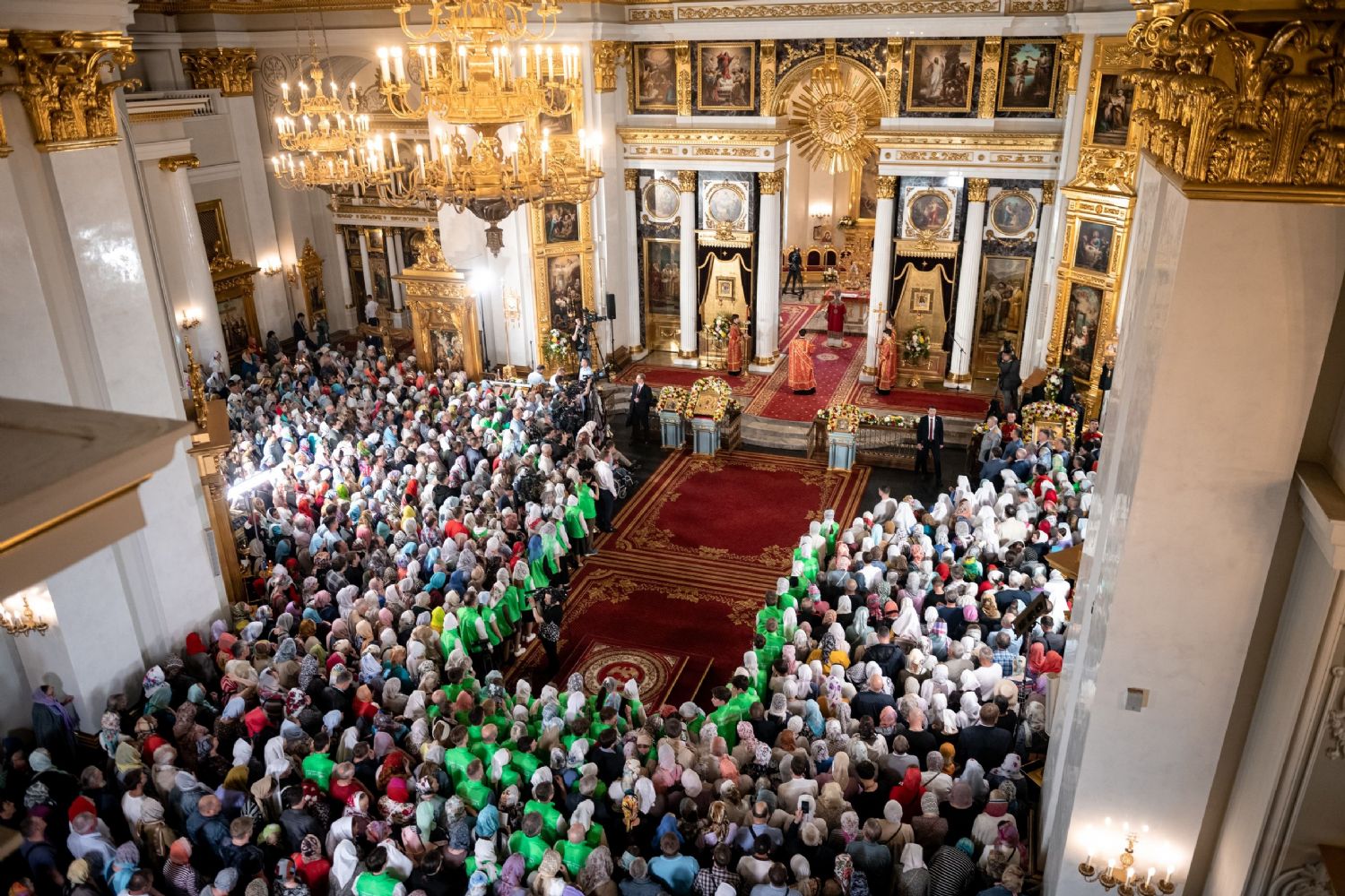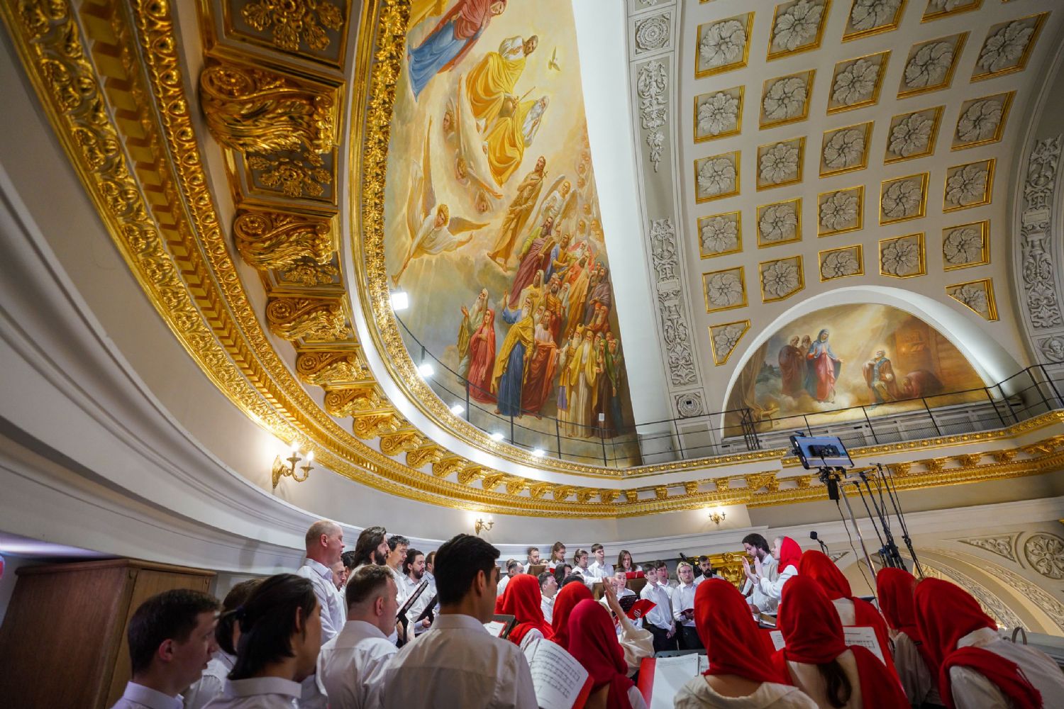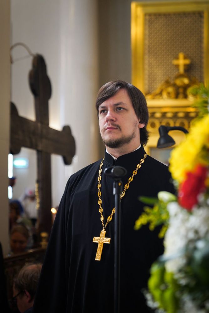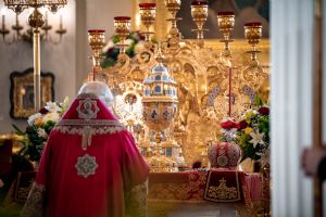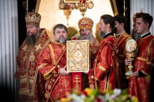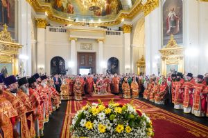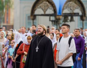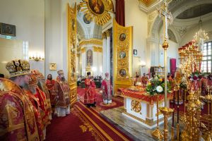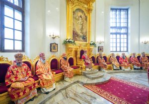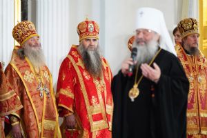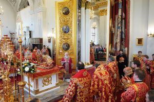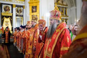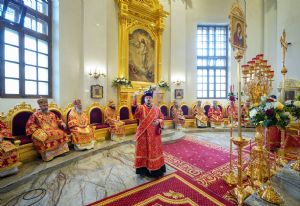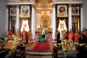 Богослужебные песнопения исполнили архиерейский мужской хор под управлением Дениса Рогова и архиерейский смешанный хор под управлением Марины Литвиненко.