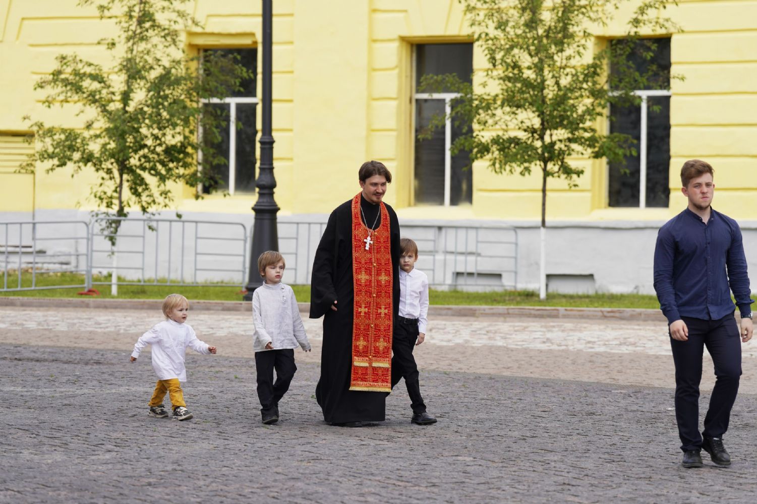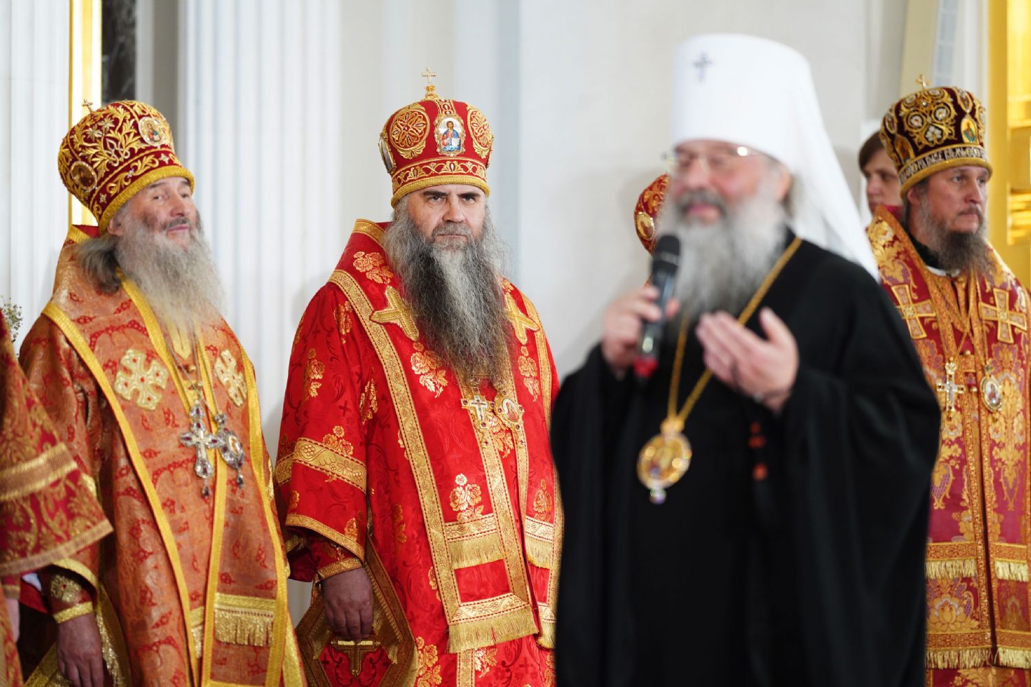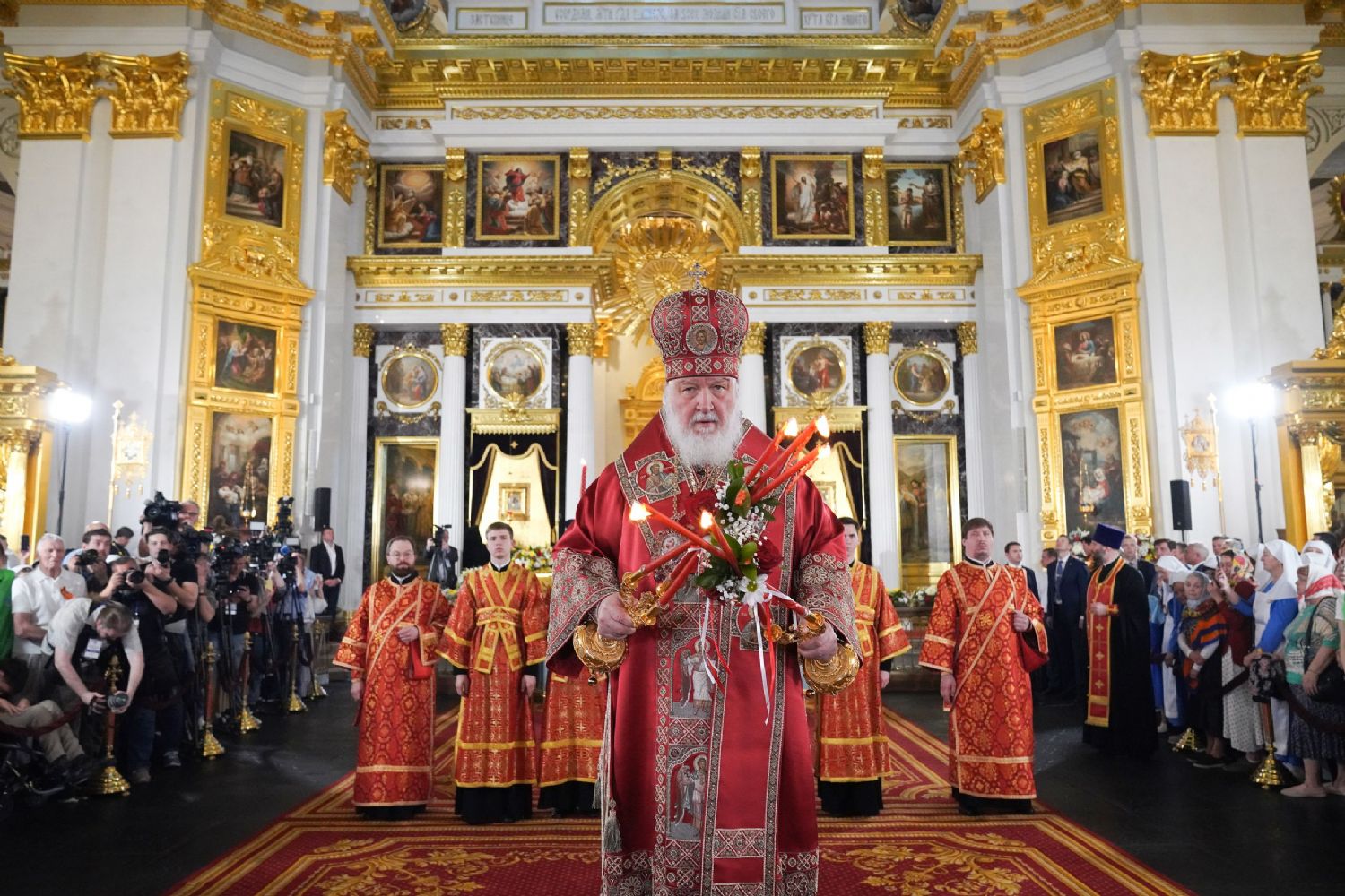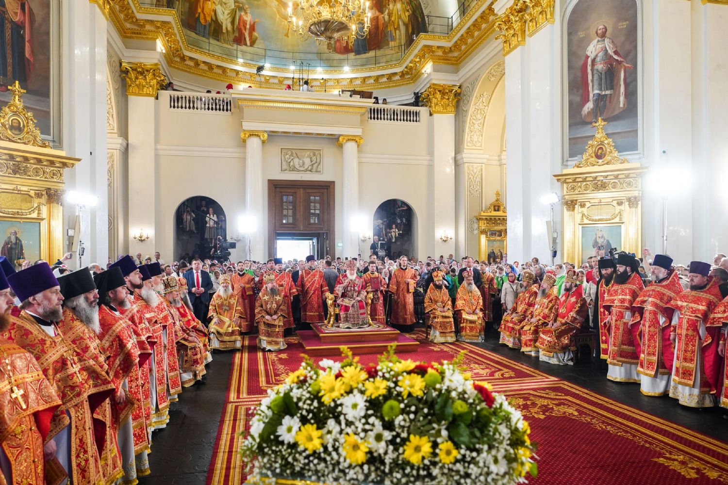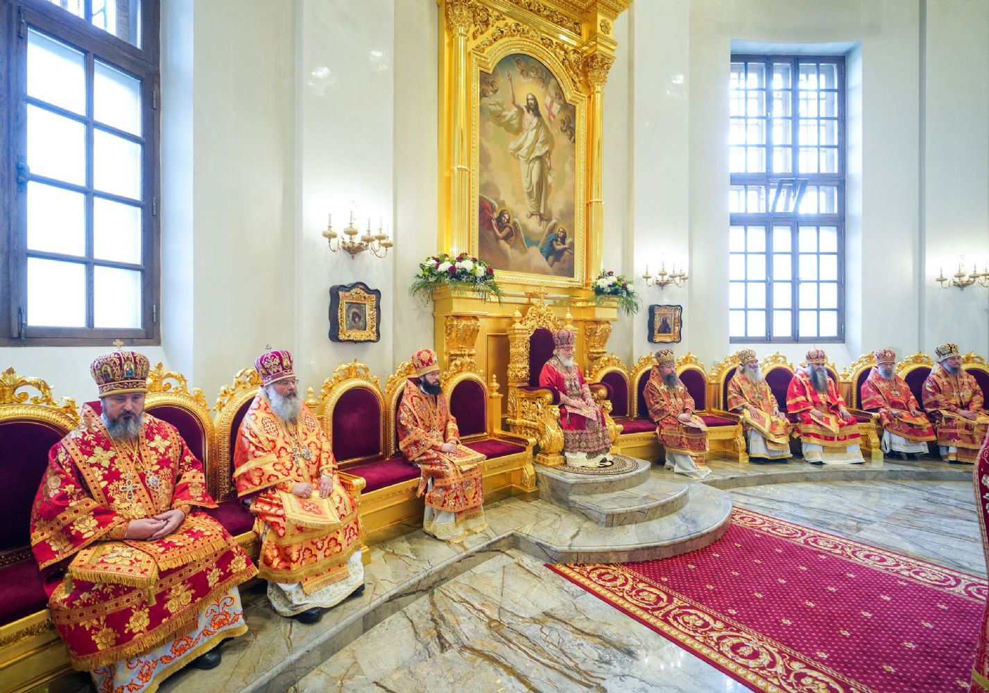 Его Святейшеству сослужили: митрополит Воскресенский Дионисий, управляющий делами Московской Патриархии; митрополит Волоколамский Антоний, председатель Отдела внешних церковных связей; митрополит Йошкар-Олинский и Марийский Иоанн; митрополит Казанский и Татарстанский Кирилл; митрополит Нижегородский и Арзамасский Георгий; митрополит Чебоксарский Чувашский Савватий; митрополит Саранский и Мордовский Зиновий; митрополит Пензенский и Нижнеломовский Серафим; епископ Чистопольский и Нижнекамский Пахомий; епископ Альметьевский и Бугульминский Мефодий; архимандрит Филарет (Булеков), заместитель председателя ОВЦС МП; архимандрит Алексий (Туриков), личный секретарь Святейшего Патриарха Кирилла; иеромонах Кирилл (Корытко), секретарь Татарстанской митрополии; игумен Марк (Виленский), наместник Казанского Богородицкого мужского монастыря; протоиерей Леонид Калинин, председатель Экспертного совета по церковному искусству, архитектуре и реставрации; духовенство Казанской епархии и города Москвы.