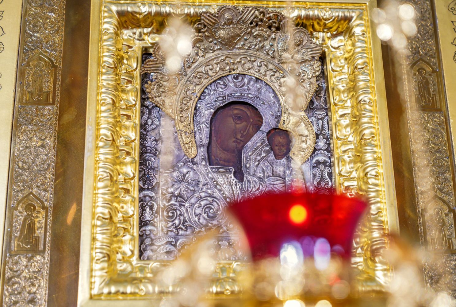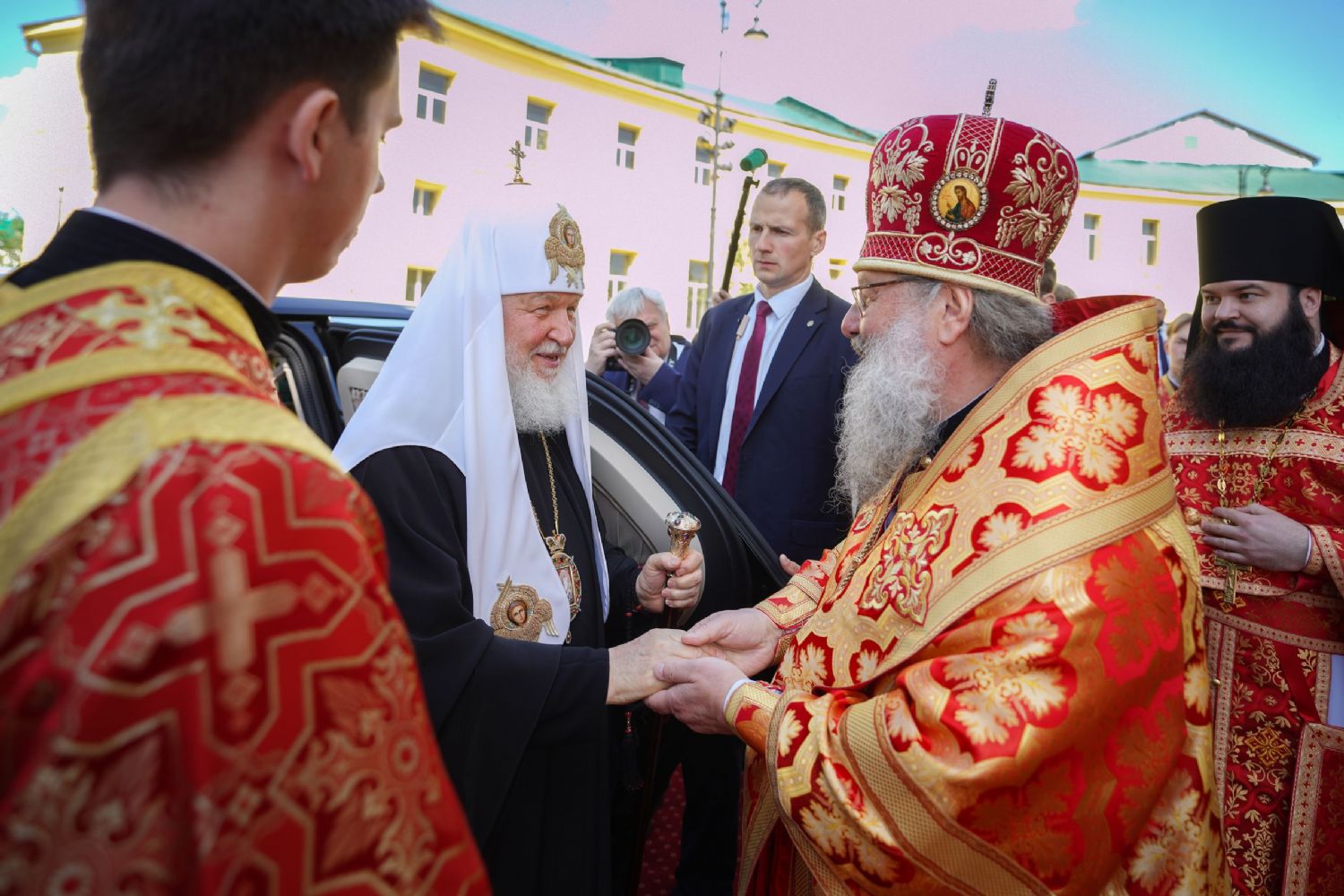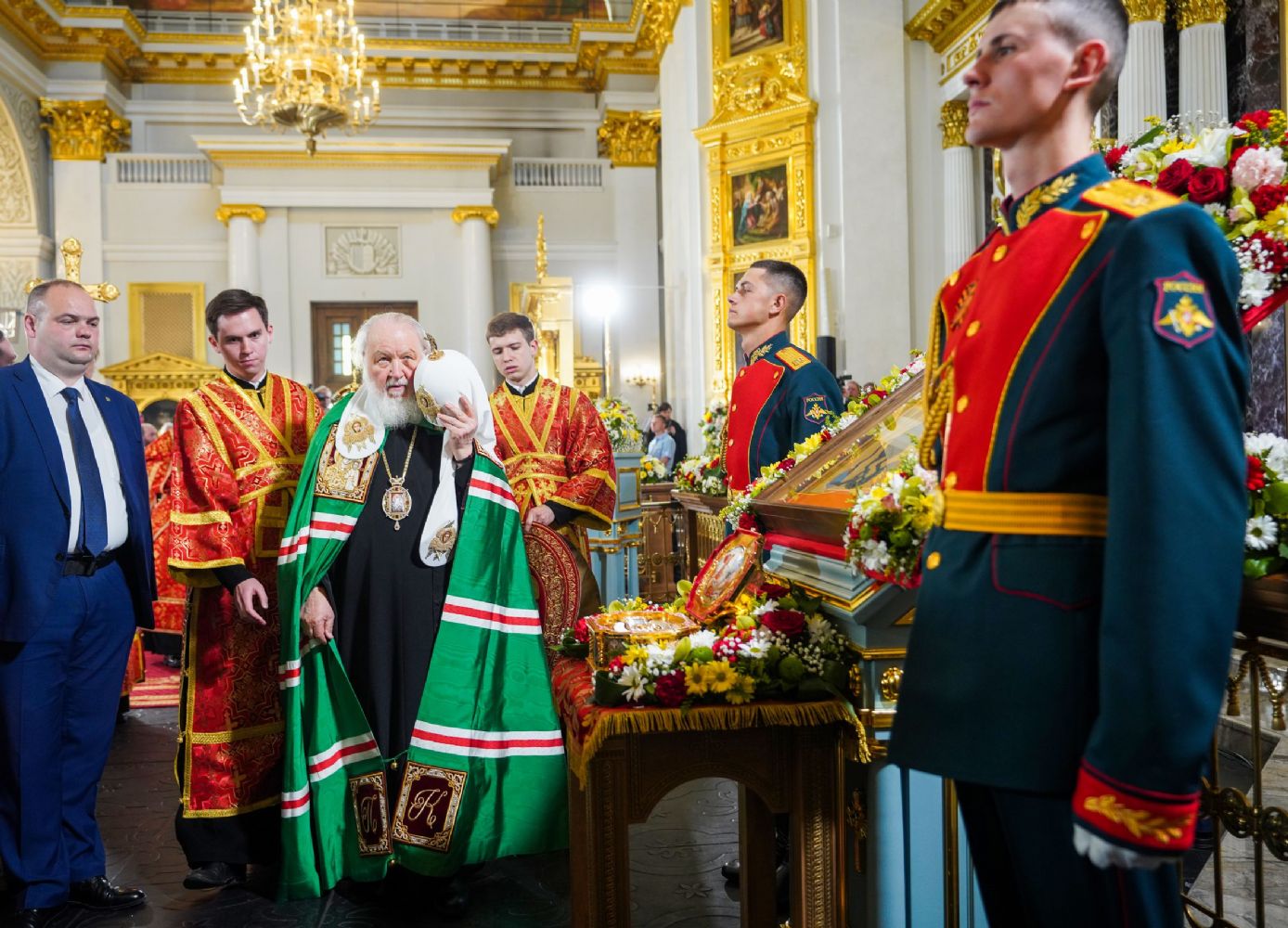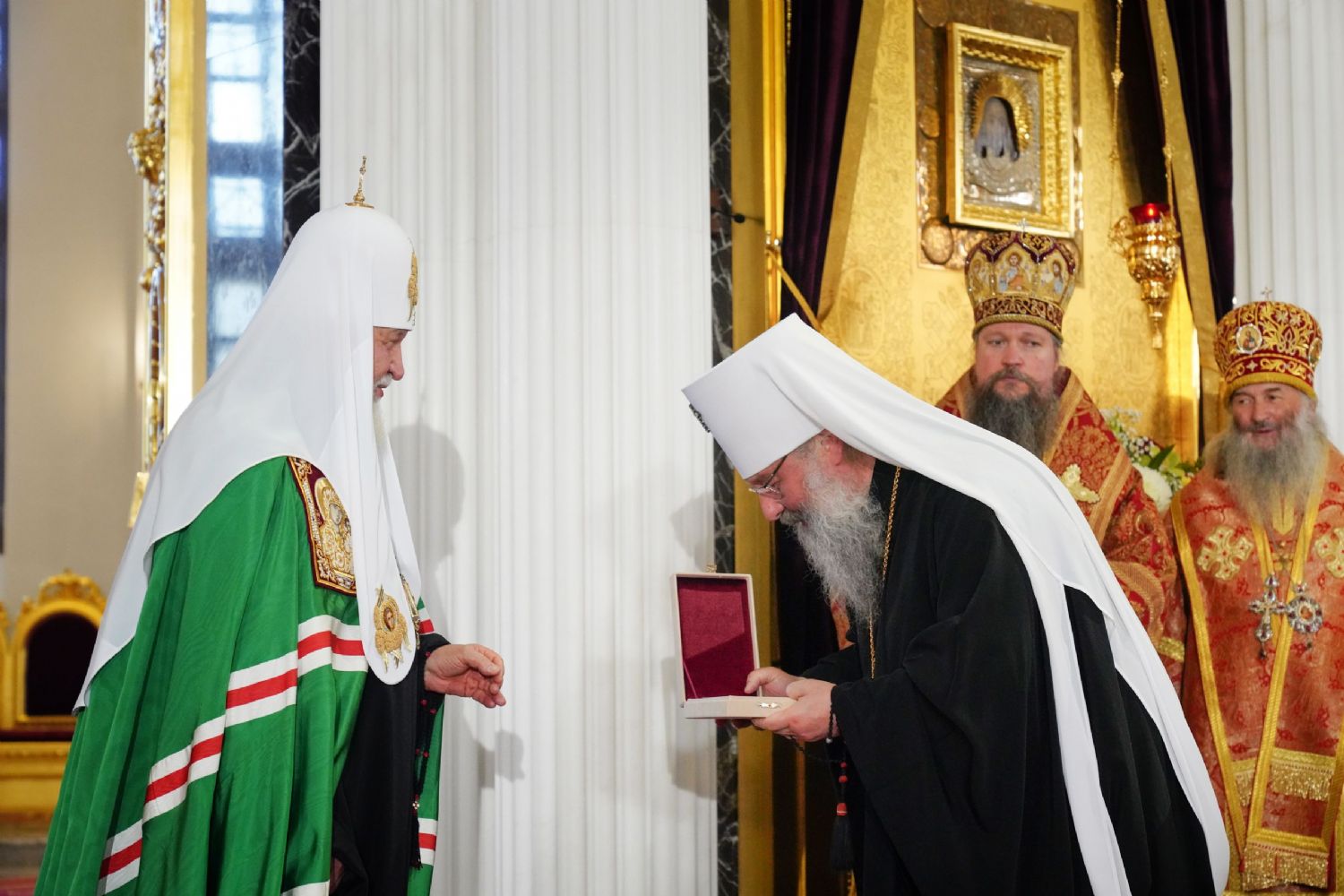 По окончании богослужения митрополит Казанский и Татарстанский Кирилл приветствовал Святейшего Владыку и преподнес Его Святейшеству образ священномученика Ермогена, Патриарха Московского и всея Руси, написанный в 1913 году, в год его канонизации.