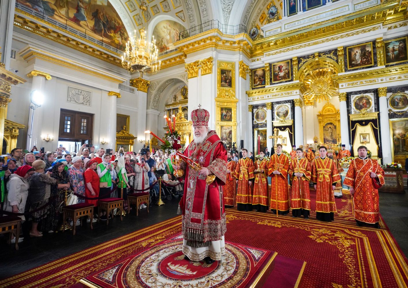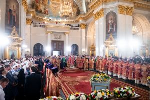 На сугубой ектении были вознесены особые прошения, Предстоятель Русской Православной Церкви прочитал молитву о Святой Руси.
