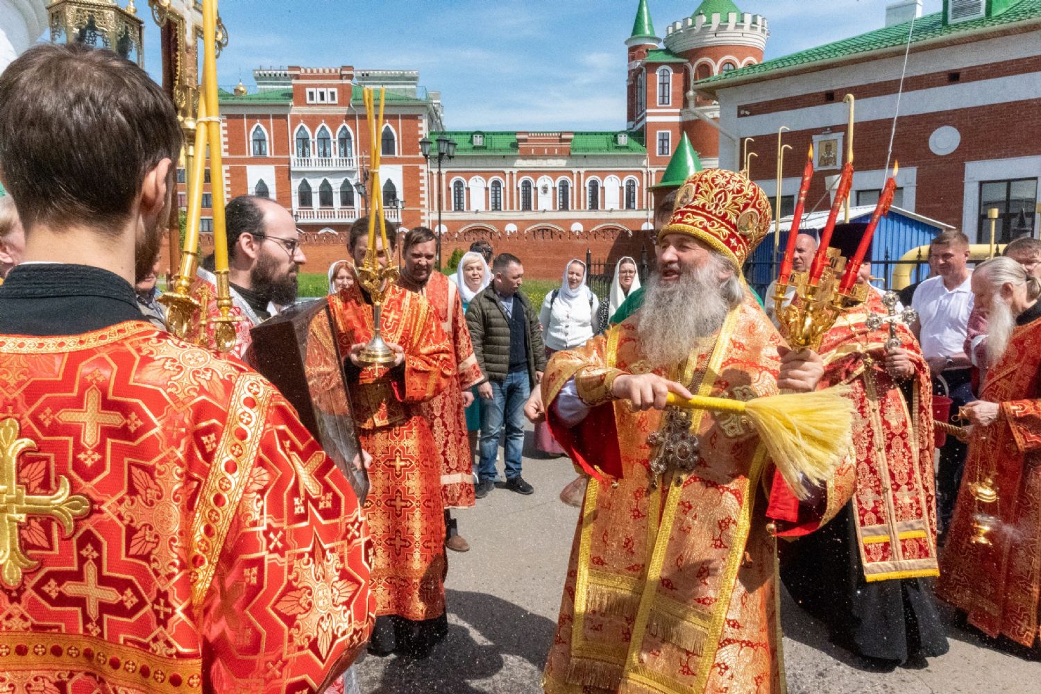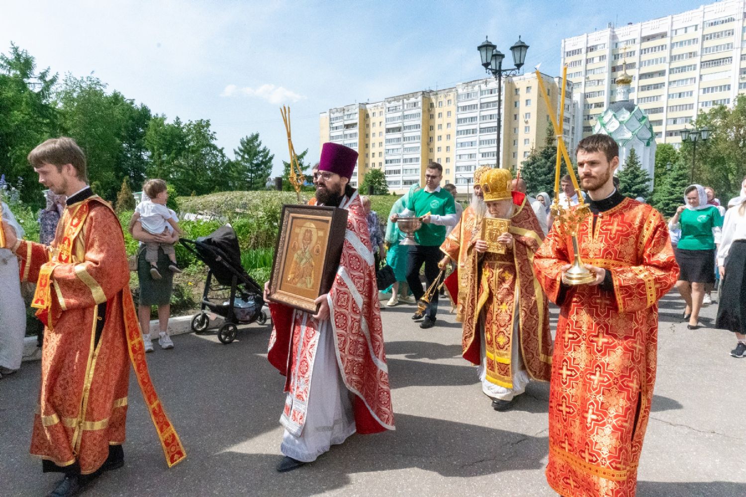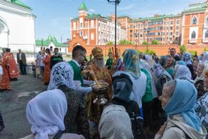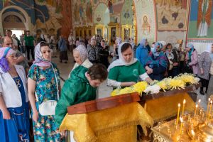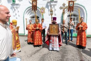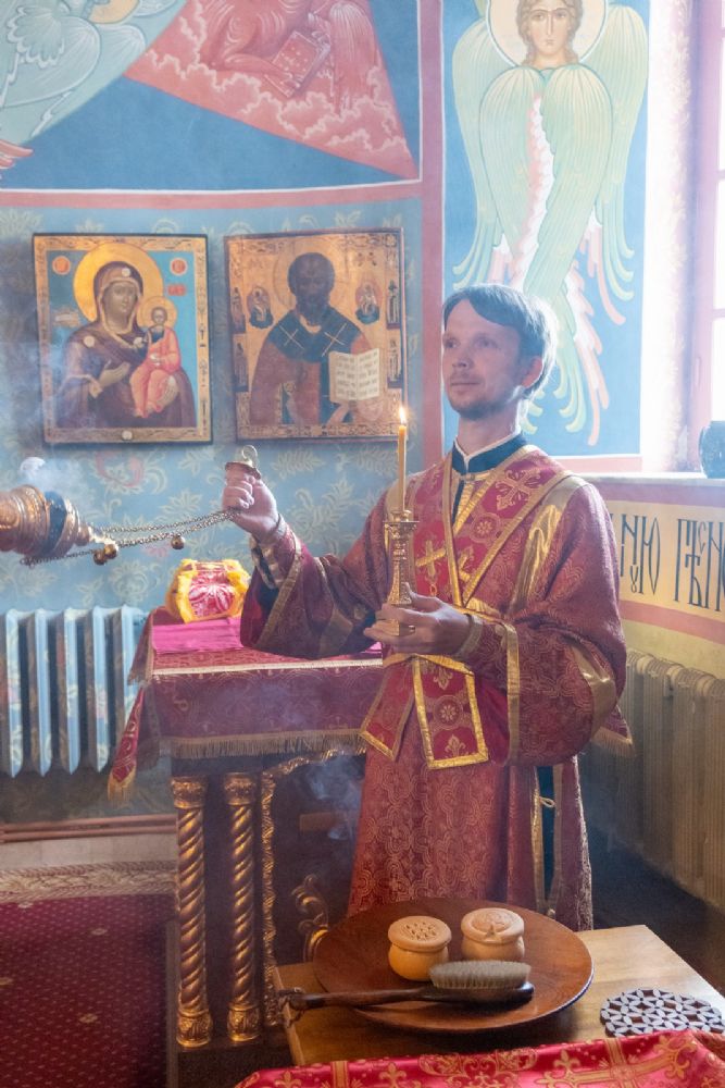 После Литургии, по традиции престольных праздников, прошел крестный ход вокруг храма со чтением Евангелия и кроплением святой водой.