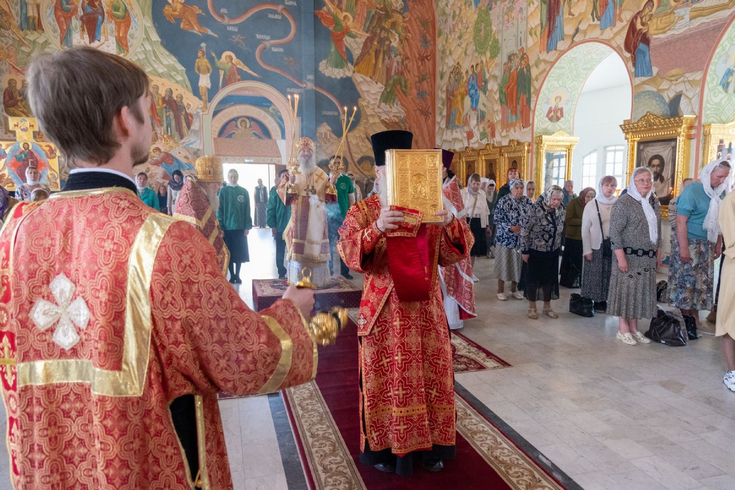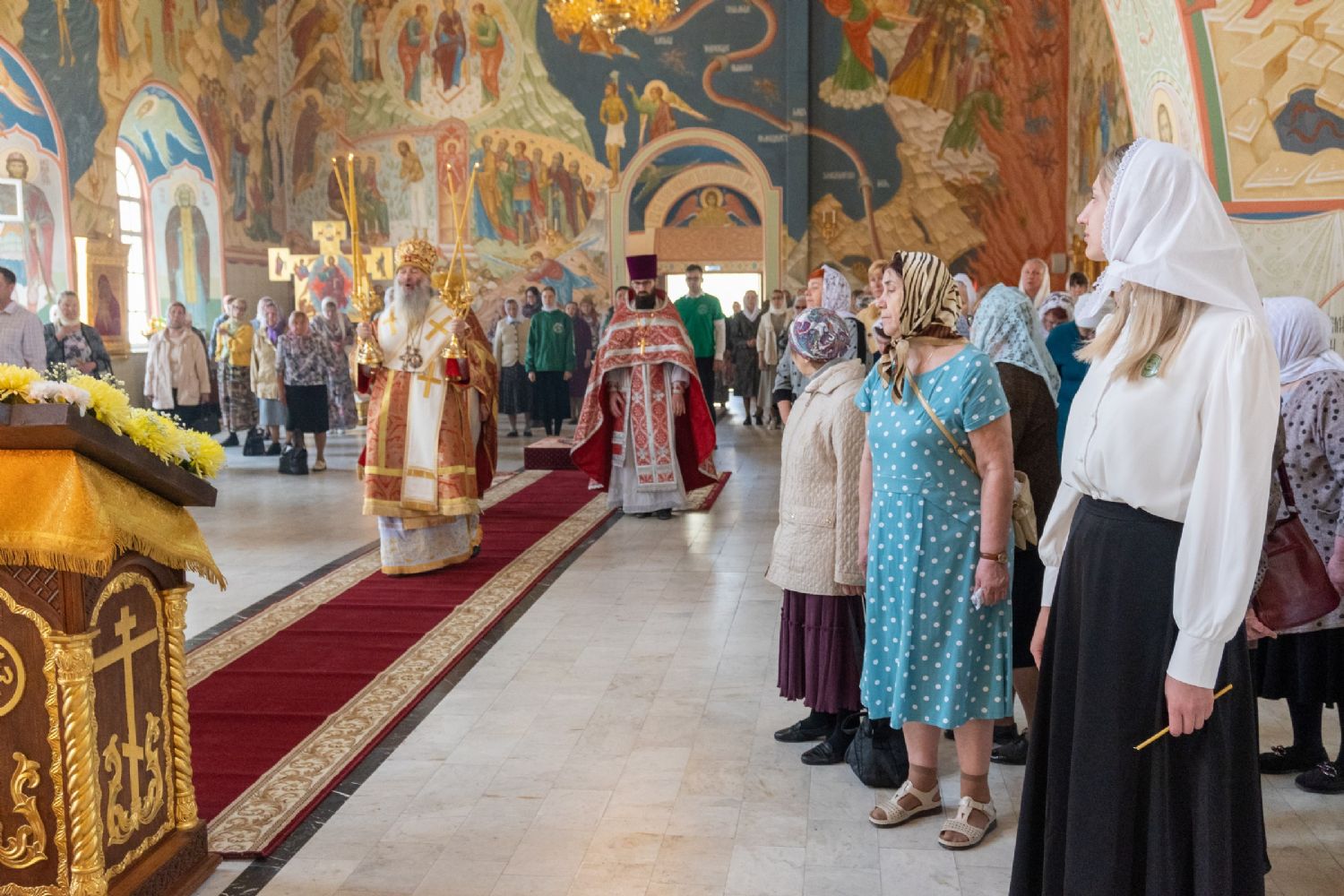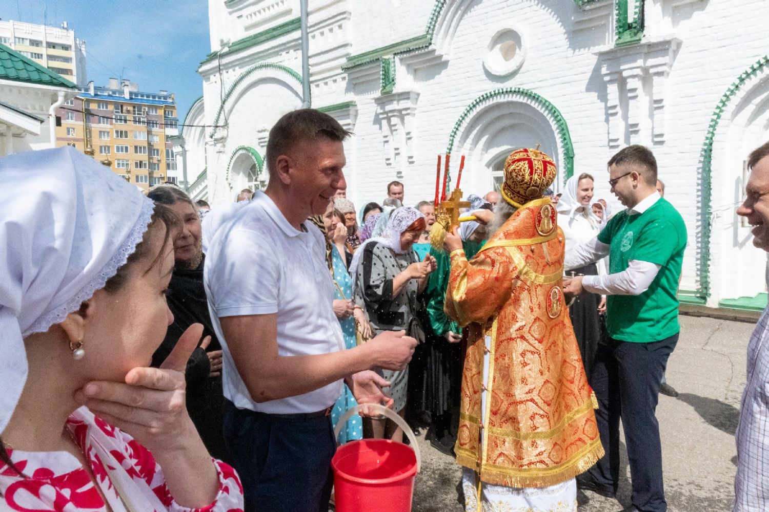 После Литургии, по традиции престольных праздников, прошел крестный ход вокруг храма со чтением Евангелия и кроплением святой водой.