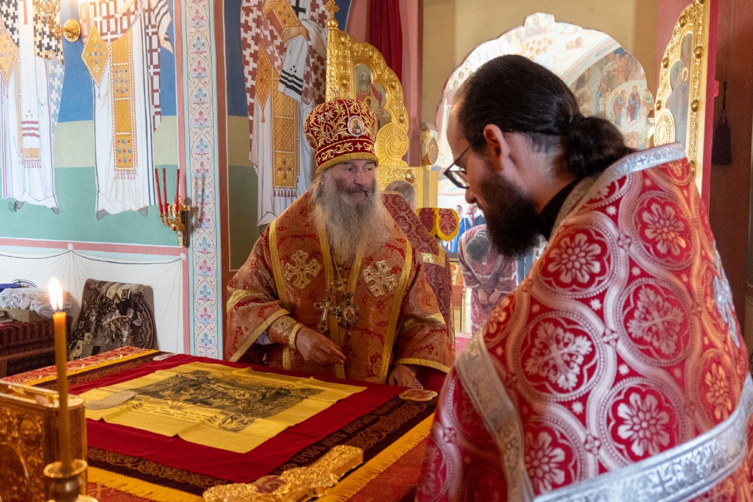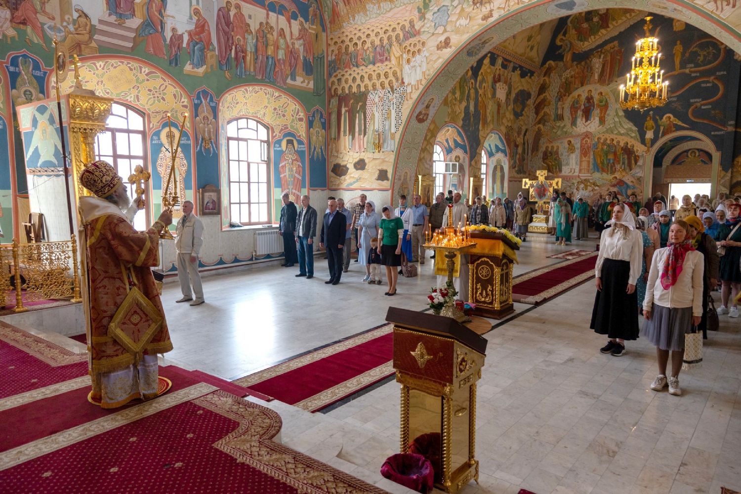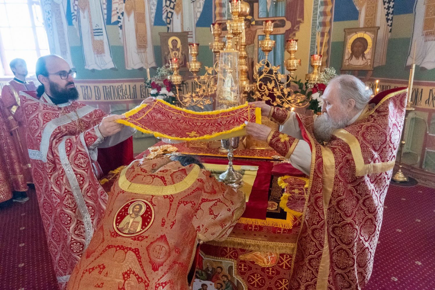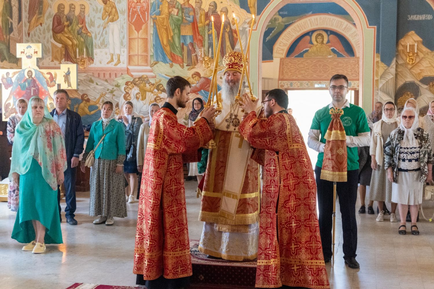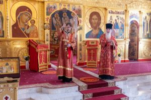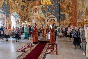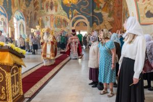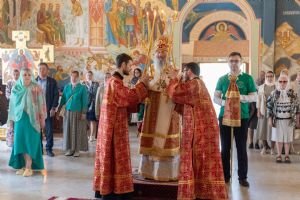Архипастырю сослужили настоятель храма протоиерей Евгений Кутырев, клирики Вознесенского собора иерей Иоанн Кристев и диакон Владимир Лихачев и протодиакон Михаил Козловский. Песнопения исполнял хор Троицкого храма под управлением Анны Ярошевич.