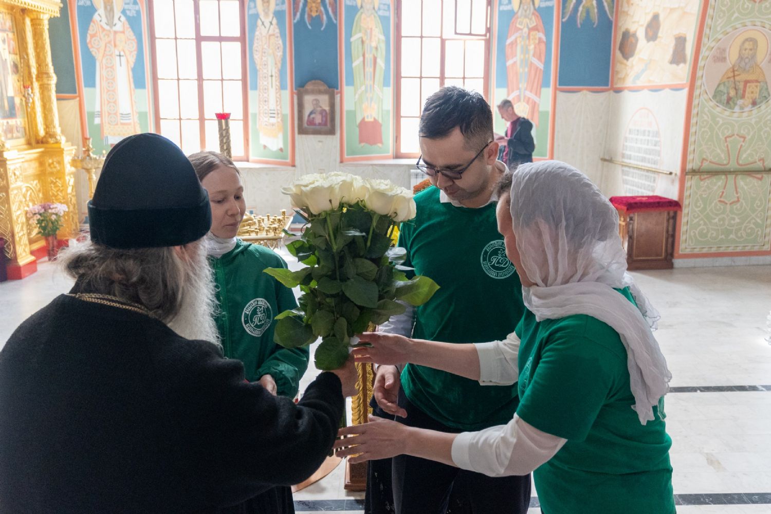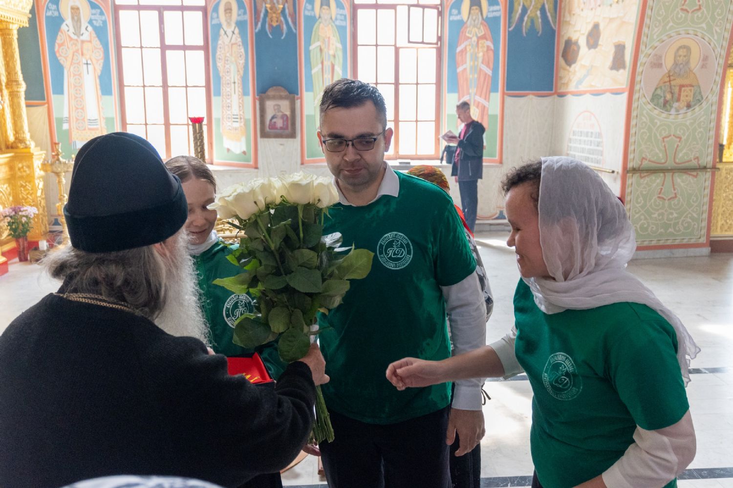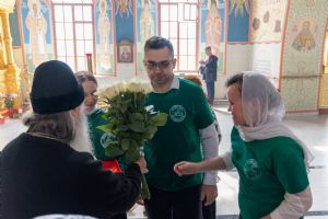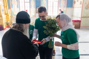 По завершении богослужения митрополита Иоанна тепло поздравили с недавним днем тезоименитства (21 мая – память апостола и евангелиста Иоанна Богослова) активисты движения «Православные добровольцы» и прихожане.