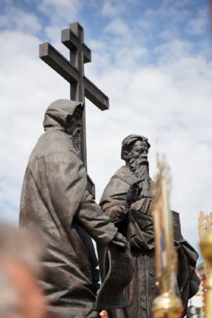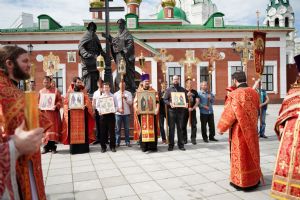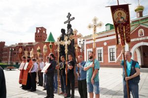 У памятника равноапостольным братьям благочинный Йошкар-Олинского церковного округа протоиерей Андрей Норкин прочел отрывок из Евангелия и окропил собравшихся святой водой. Затем все вместе вознесли молитву и пропели величание святым Кириллу и Мефодию. И четырьмя потоками крестоходцы вернулись в свои храмы.