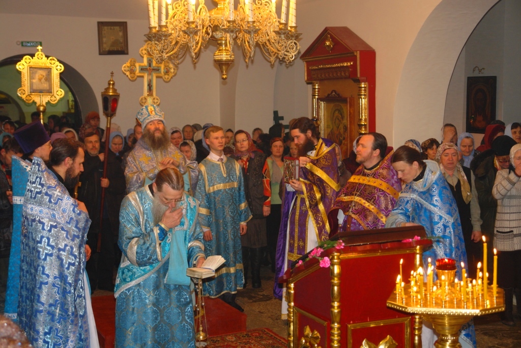 Ко встрече владыки Иоанна уже был отслужена утреня с великопостными часами, а в 8 часов началась вечерня в соединении с литургией, по окончании которой был совершен и крестный ход вокруг храма.