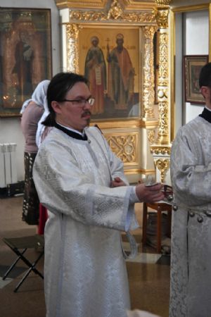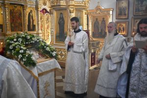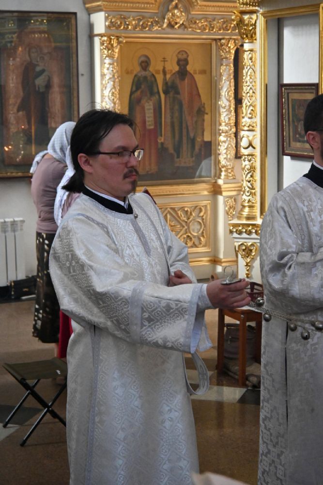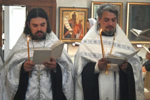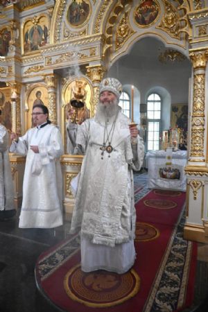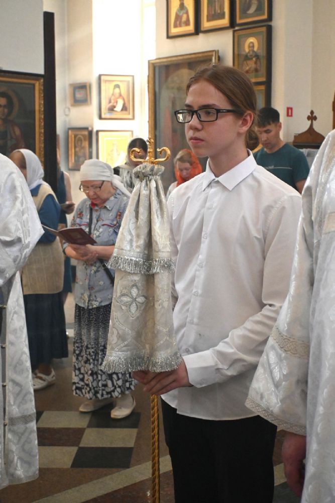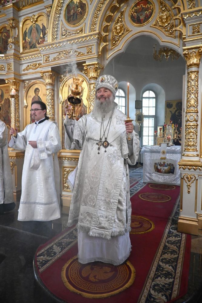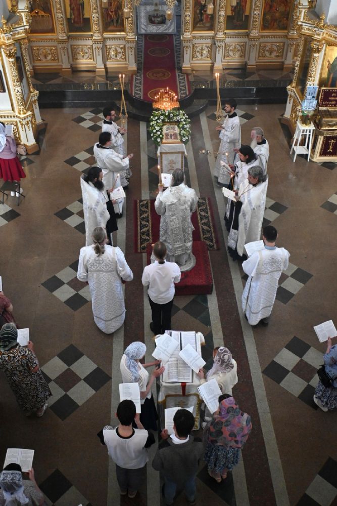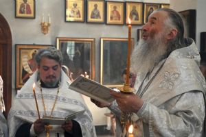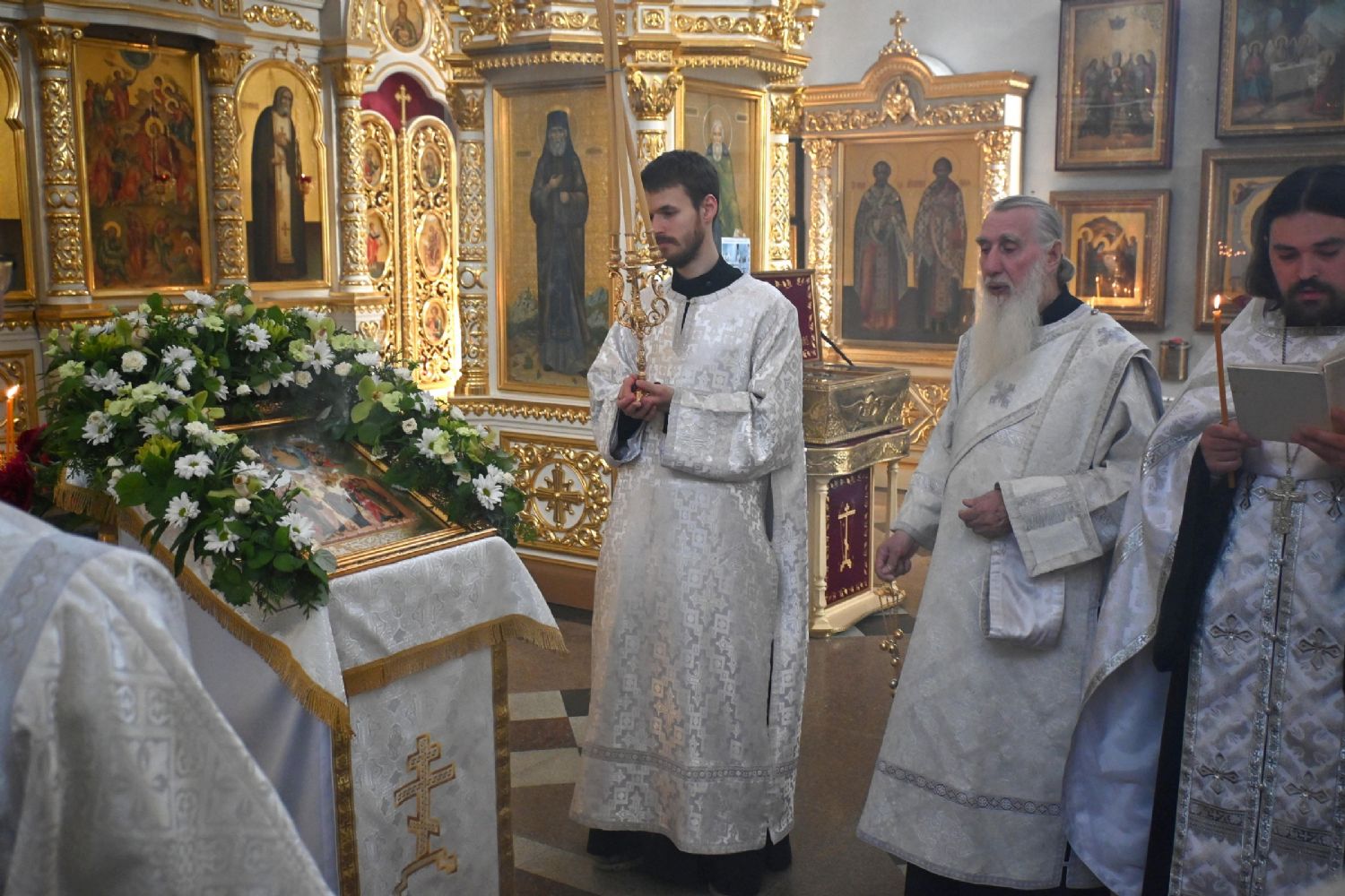 Владыке сослужили настоятель храма иерей Александр Лоскутов, клирики храма иереи Никита Смирнов, Евгений Симаков и диакон Димитрий Кудряшов, а также протодиакон Михаил Козловский. Песнопения исполнял хор храма под управлением регента Наталии Поповой.