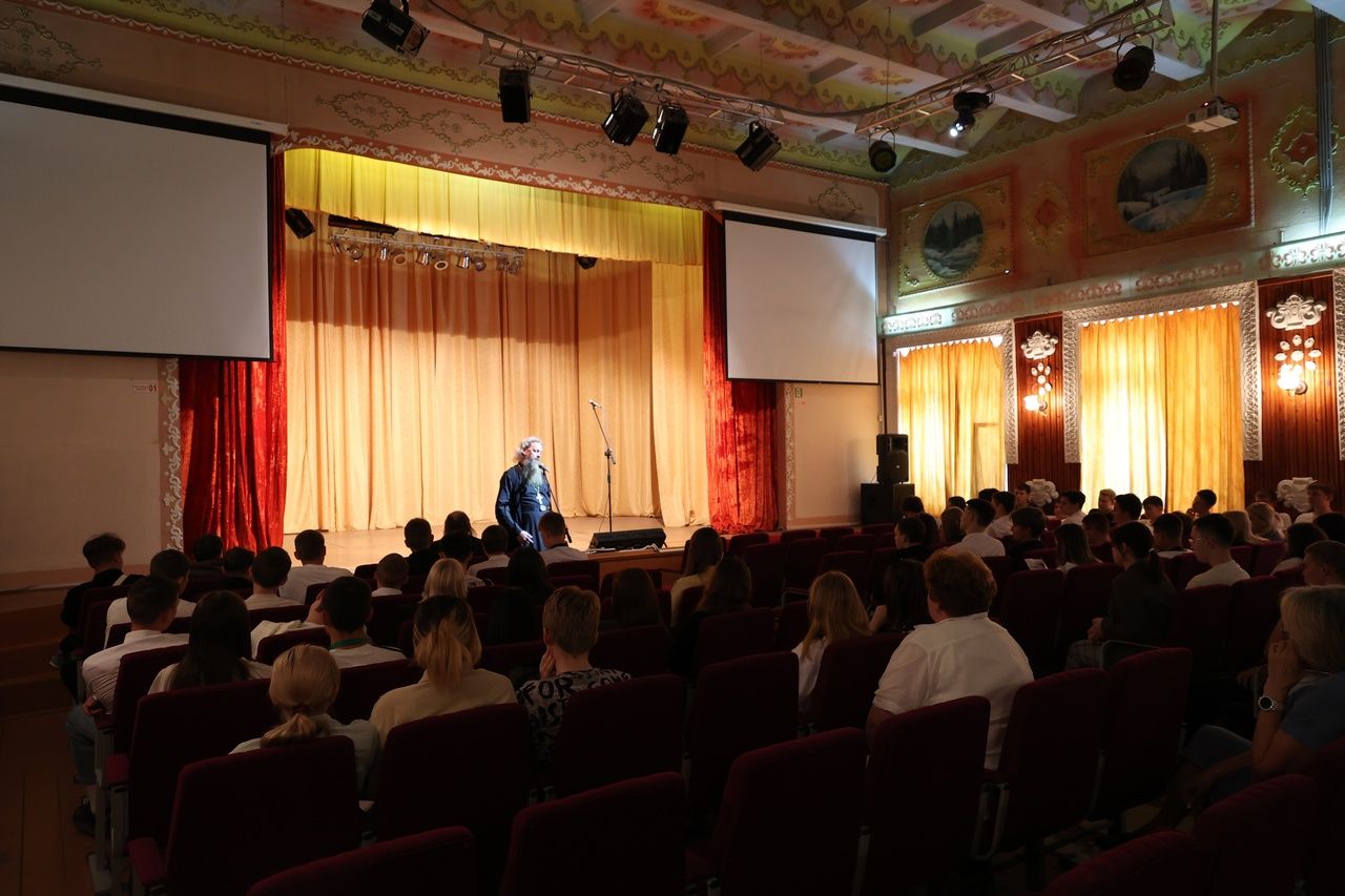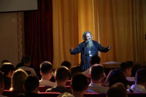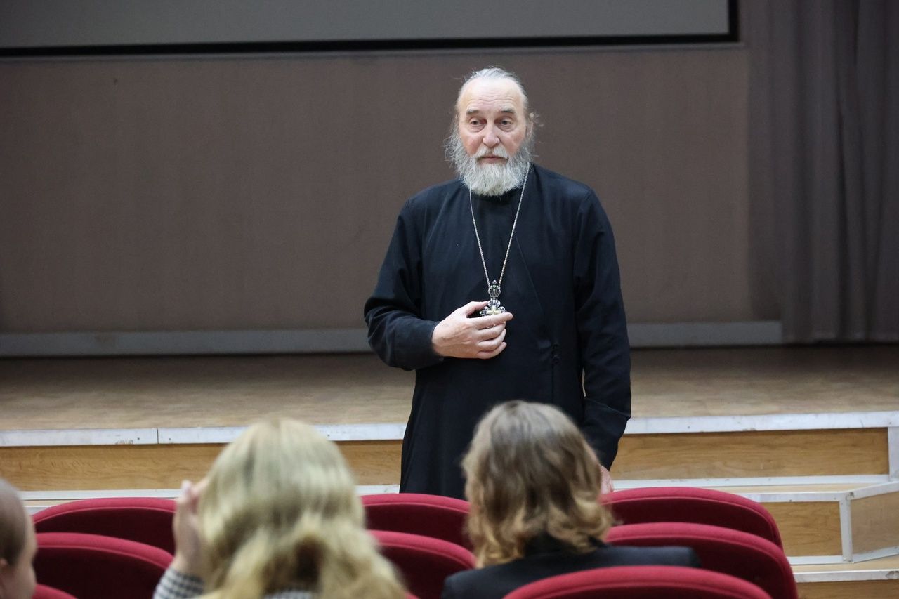 Заведующий кафедрой теологии РГУ, кандидат исторических наук игумен Лука (Степанов), настоятель Спасо-Преображенского Пронского мужского монастыря и доцент кафедры теологии, кандидат физико-математических наук протоиерей Сергий Рыбаков, руководитель отдела религиозного образования и катехизации Рязанской епархии провели беседы с учащимися и педагогами по ранее утвержденной программе пребывания.