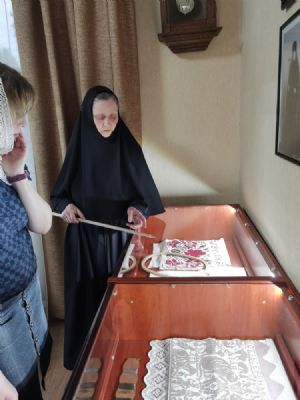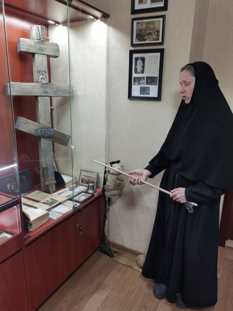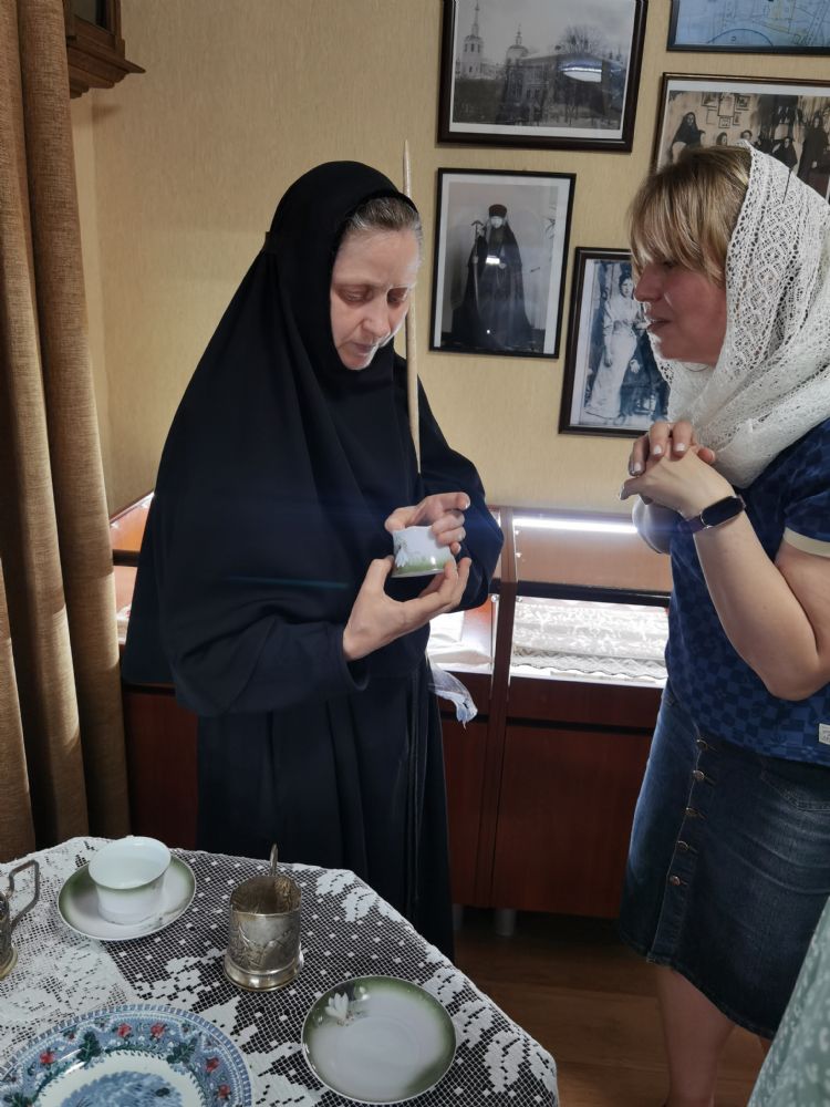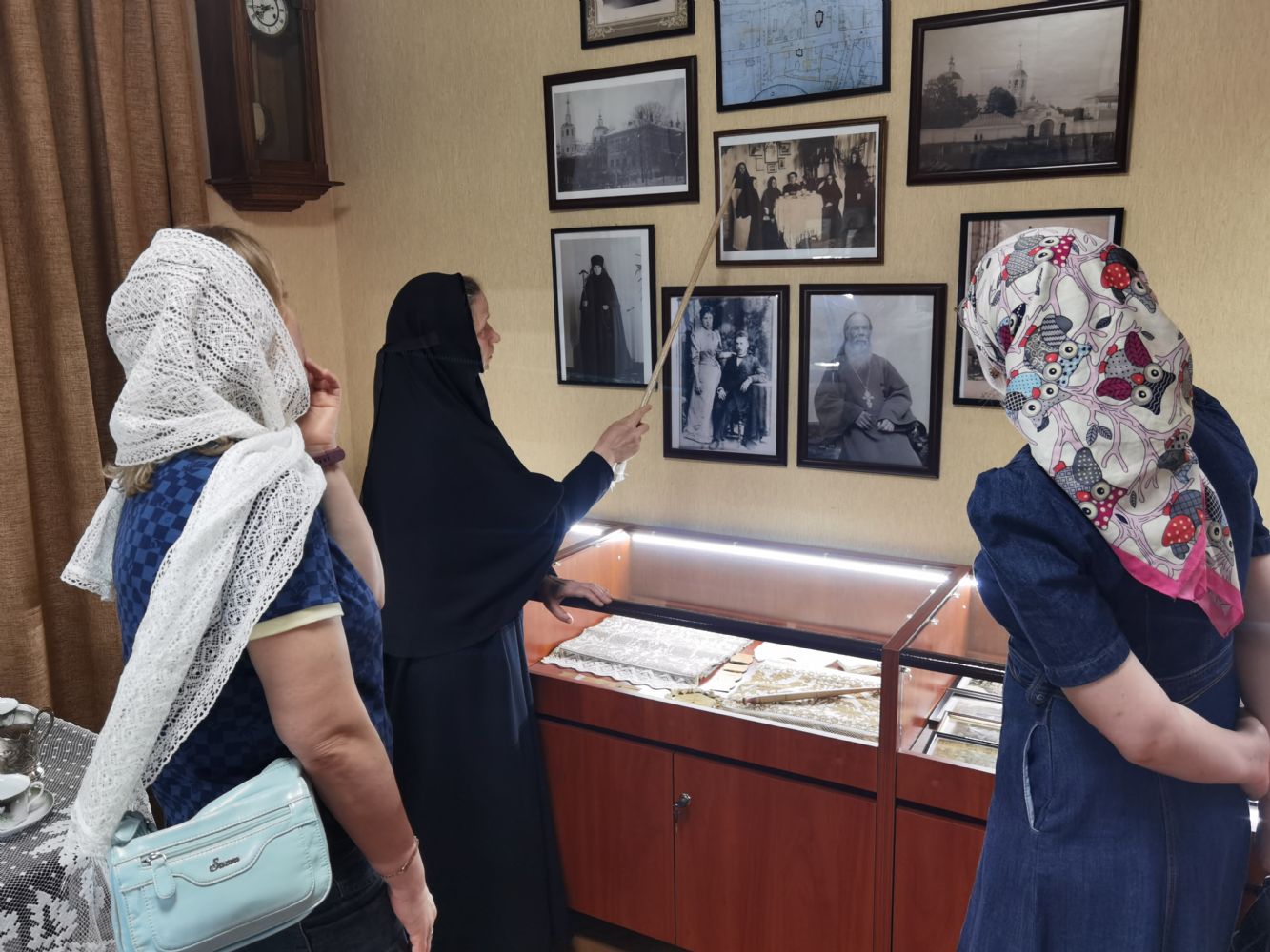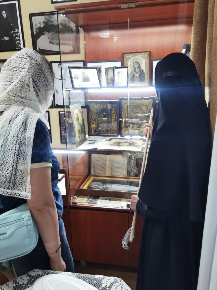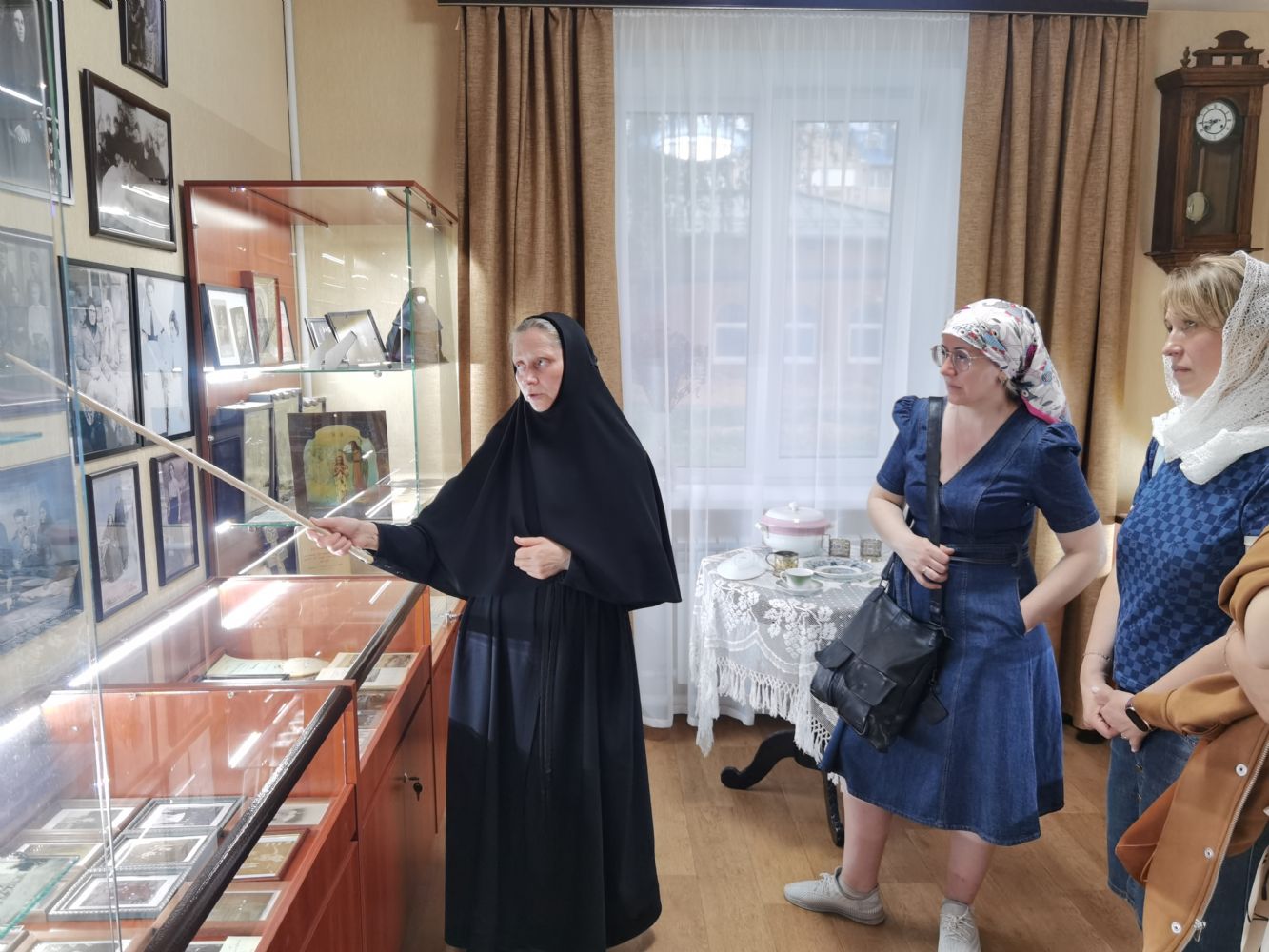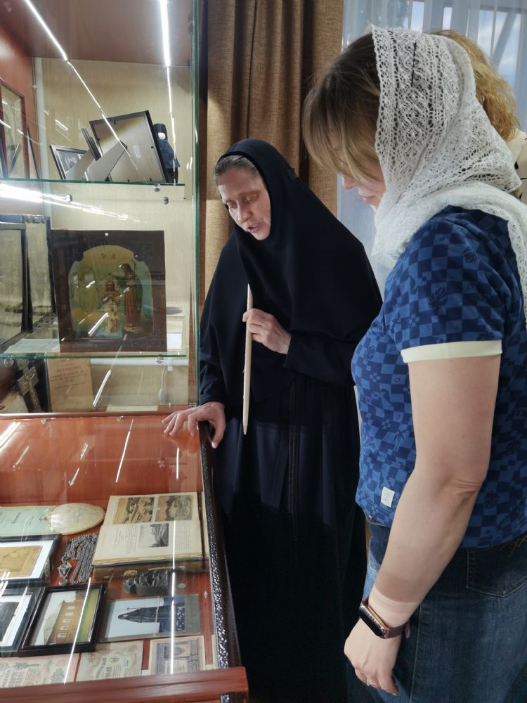 Так, 26 мая экскурсанты в количестве шестерых человек, в том числе выпускники православных образовательных курсов имени священномученика Адриана Троицкого, предварительно записавшись на посещение музейной комнаты, пришли в обитель. Здесь их радушно встретила насельница монастыря матушка Рафаила, которая за два часа, что продолжалась экскурсия, рассказала гостям много интересного и поучительного.