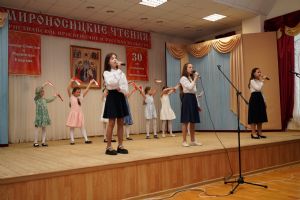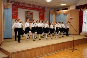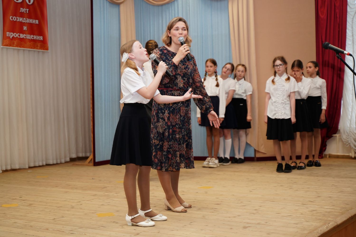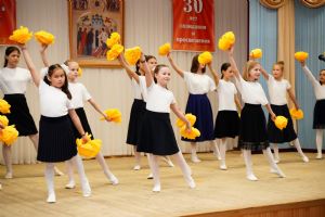 Хор гимназии под управлением регента Марии Беляниной (выпускницы гимназии) исполнил гимн учебного заведения – песню о Сергии Радонежском «Дивный свет на Маковце-горе». К слову, нынешний учебный год был для гимназического хора знаменательным – ребятам в пасхальные дни довелось петь за Патриаршим богослужением в Москве. Далее младшие гимназисты, окончившие первый класс, исполнили выпускной вальс. Свои таланты в пении, танцах, музыке, декламировании стихов продемонстрировали в рамках праздничного концерта ребята всех возрастов.