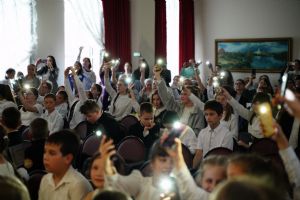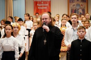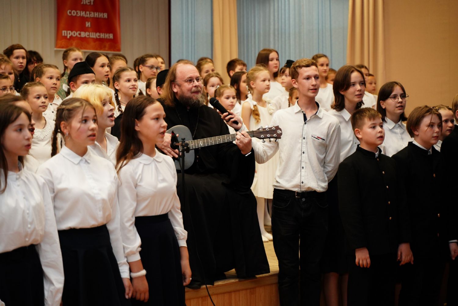 Завершилось мероприятие финальной песней «Господи, слава Тебе!» в исполнении сводного хора учащихся под гитарный аккомпанемент директора гимназии – отца Евгения.