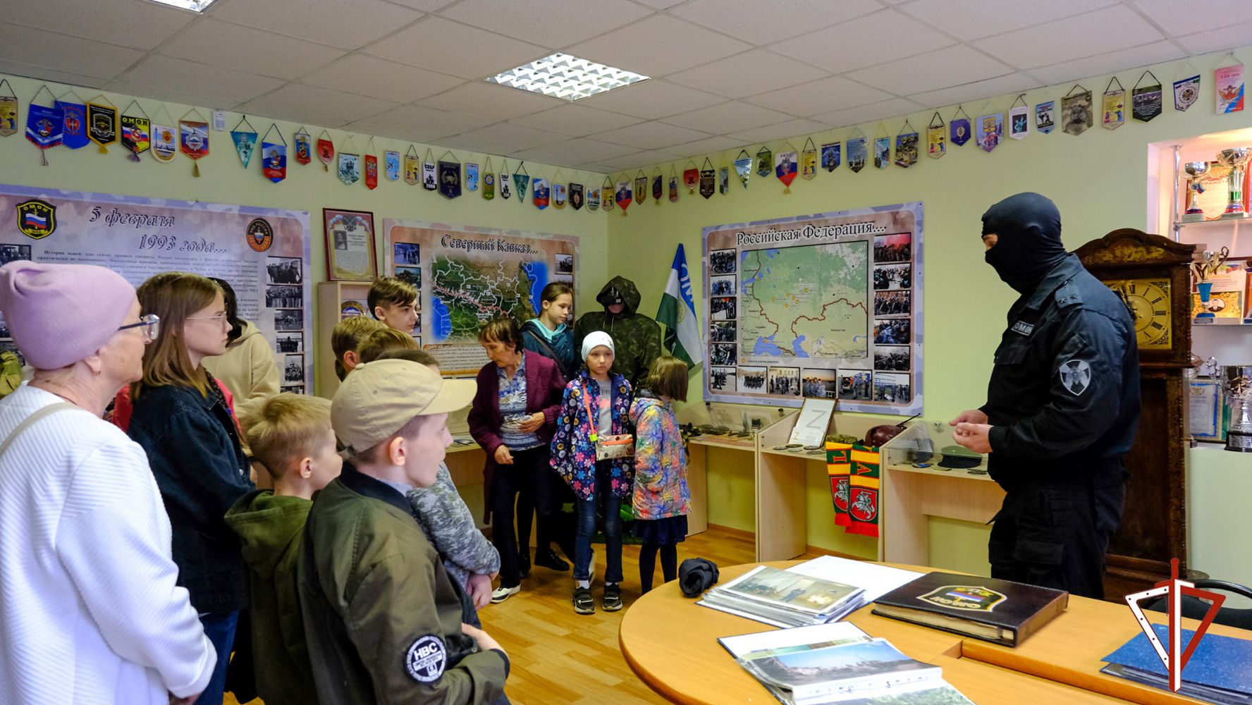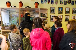 В музее отряда спецподразделения ОМОН «Таир» Росгвардии воспитанники школы ознакомились с предметами экипировки сотрудников ОМОН и рассматривали архивные фотографии бойцов. Взрывотехник инженерно-технического отделения ОМОН «Таир» рассказал о работе саперов и об основных правилах безопасного поведения в общественных местах, во время проведения массовых и праздничных мероприятиях и по соблюдению мер безопасности в случае обнаружения подозрительных предметов.