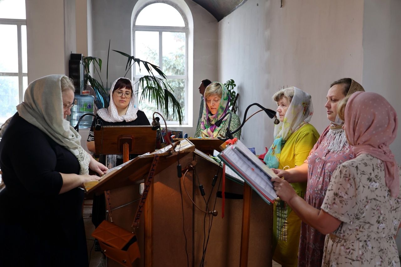 Его Преосвященству сослужило духовенство собора. Песнопения исполняли архиерейский хор под управлением Любови Михеевой и детско-юношеский хор «Славословие» под руководством регента Марии Захаровой.