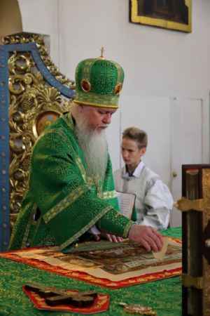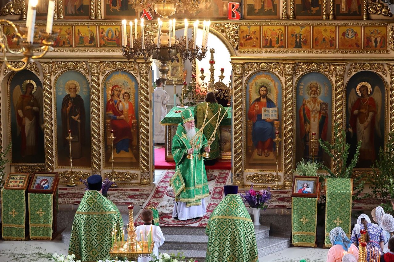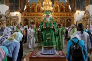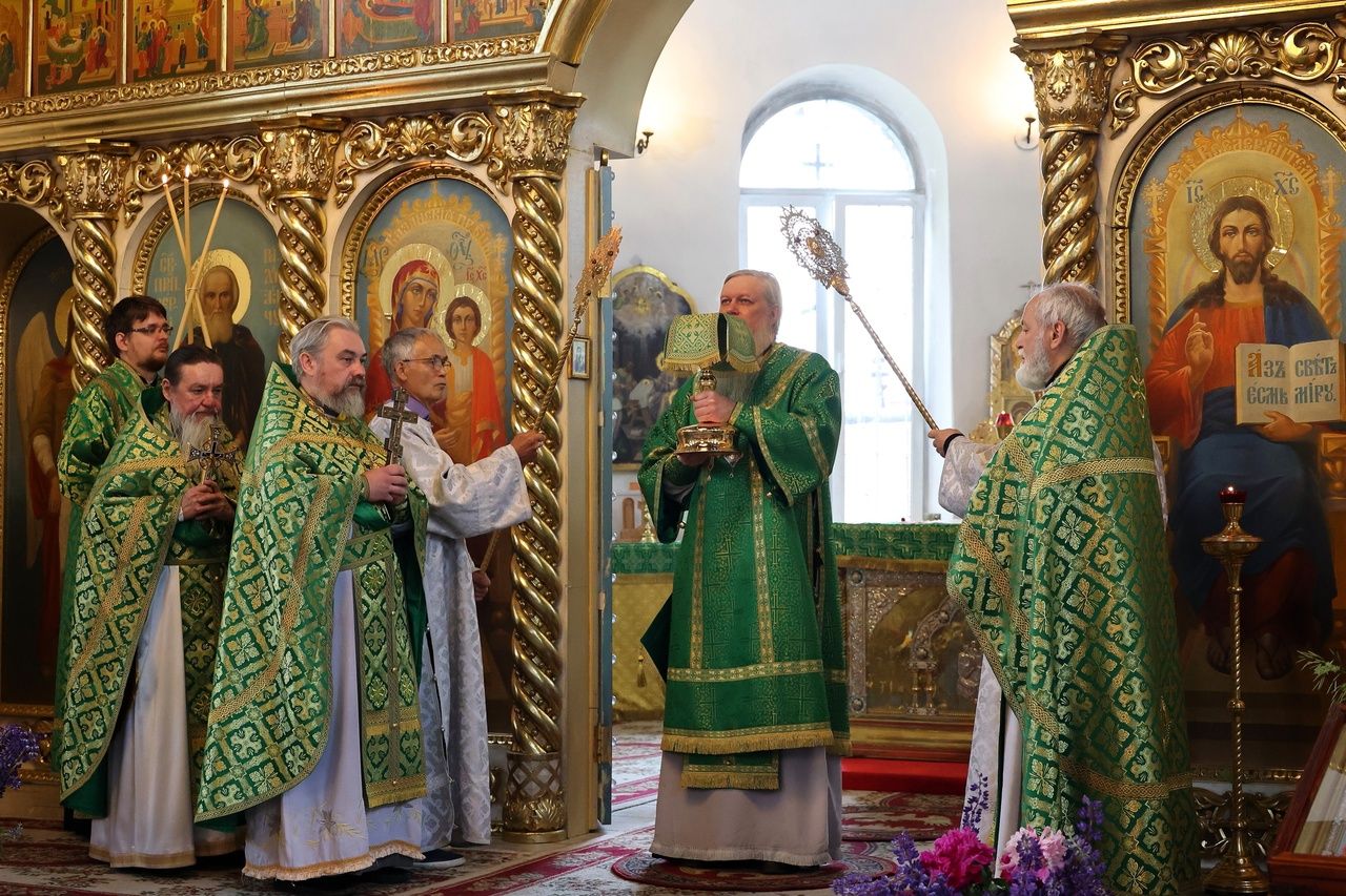 4 июня, в праздник Святой Троицы (Пятидесятницы), епископ Волжский и Сернурский Феофан совершил Божественную литургию в Никольском кафедральном соборе г. Волжска.