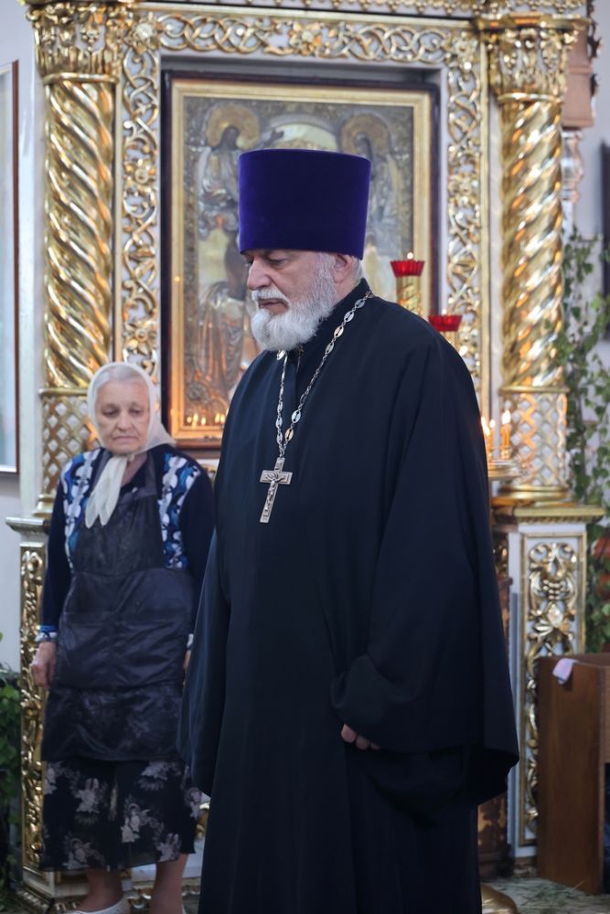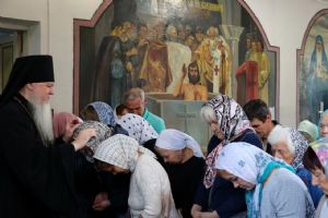 Архипастырю сослужили клирики собора, песнопения исполнял архиерейский хор под управлением Любови Михеевой.