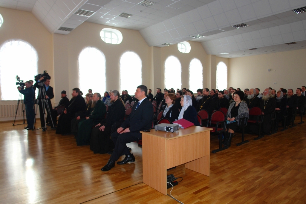 Специалисты Департамента экологической безопасности, природопользования и защиты населения РМЭ познакомили собравшихся с требованиями Федерального законодательства в области защиты населения от чрезвычайных ситуаций, обеспечения пожарной безопасности в помещениях с массовым пребыванием людей (храмах). Директор медицинского колледжа Рыжков Л.В. рассказал об основах медицинской защиты населения.