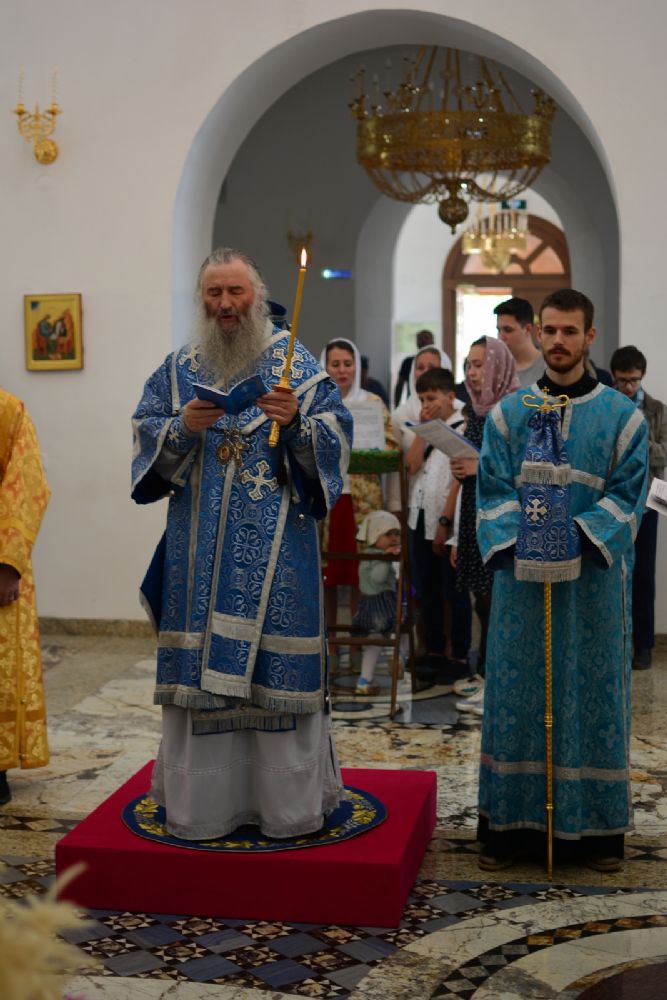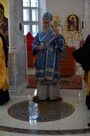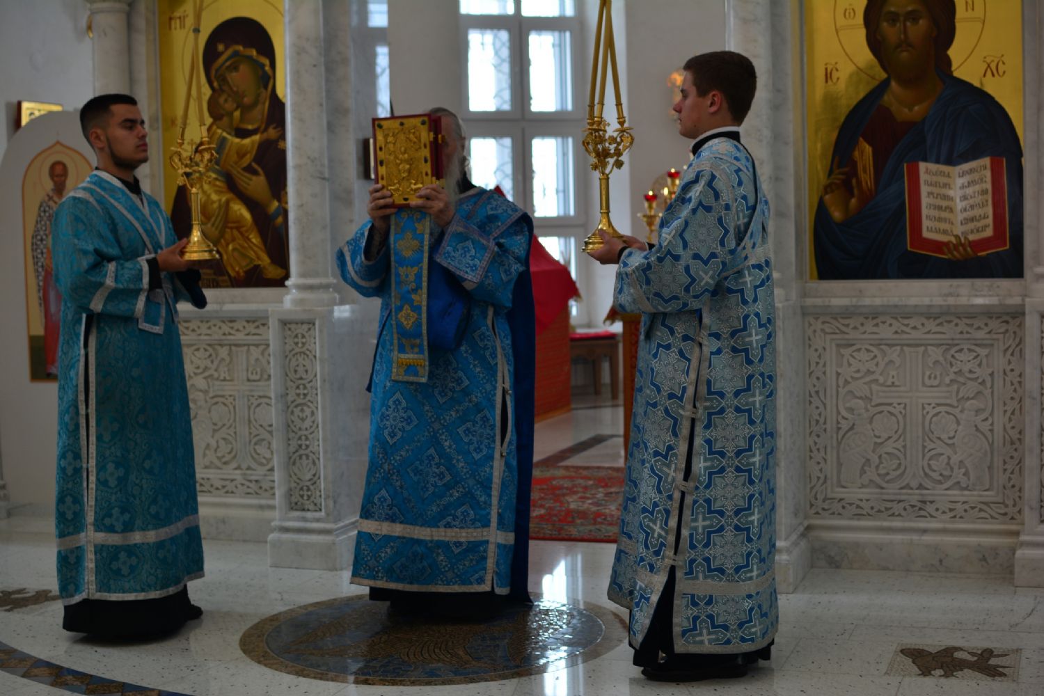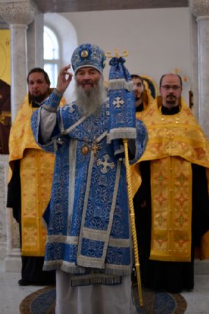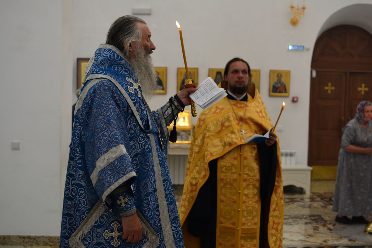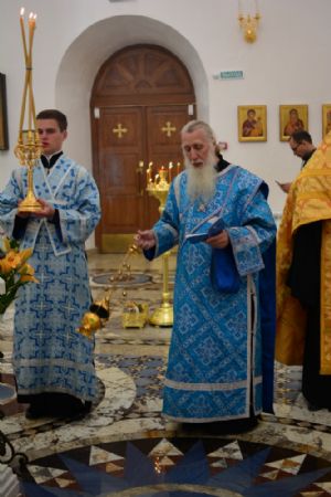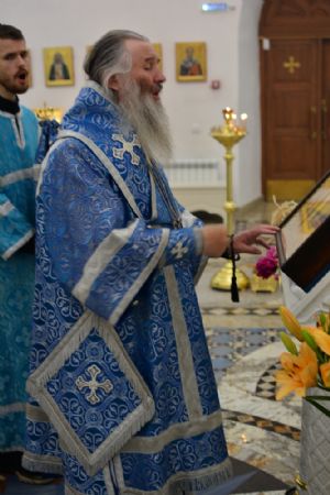 Владыке сослужили настоятель храма иерей Алексий Михеев, клирики храма иереи Игорь Коваль и Сергий Пуртов и протодиакон Михаил Козловский. Песнопения исполнял хор храма под управлением Александры Ивановой.