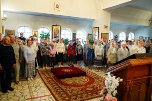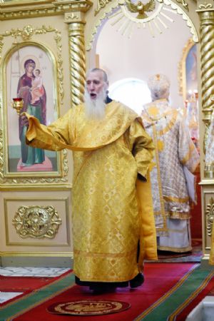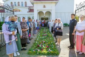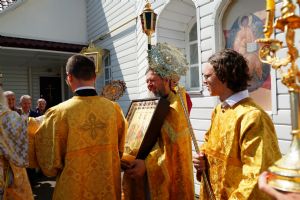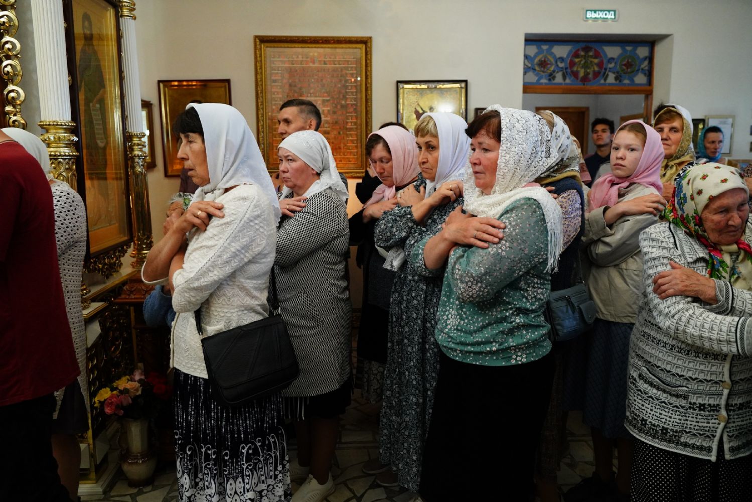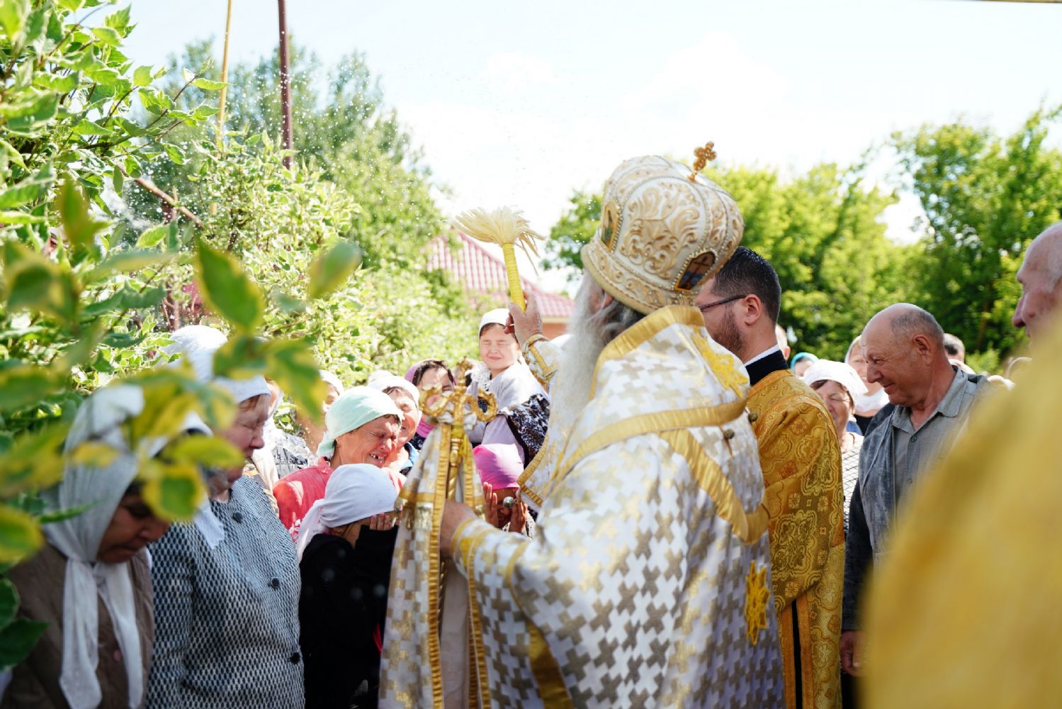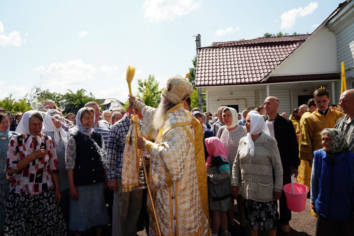 После Литургии прошел крестный ход вокруг храма со чтением Евангелия и кроплением святой водой. По возвращении в храм архипастырь вознес молитву Предтече Господню Иоанну и обратился к собравшимся с проповедью.