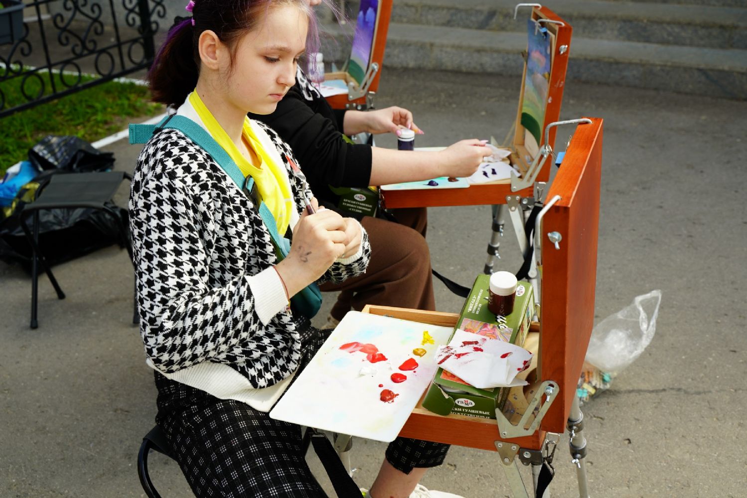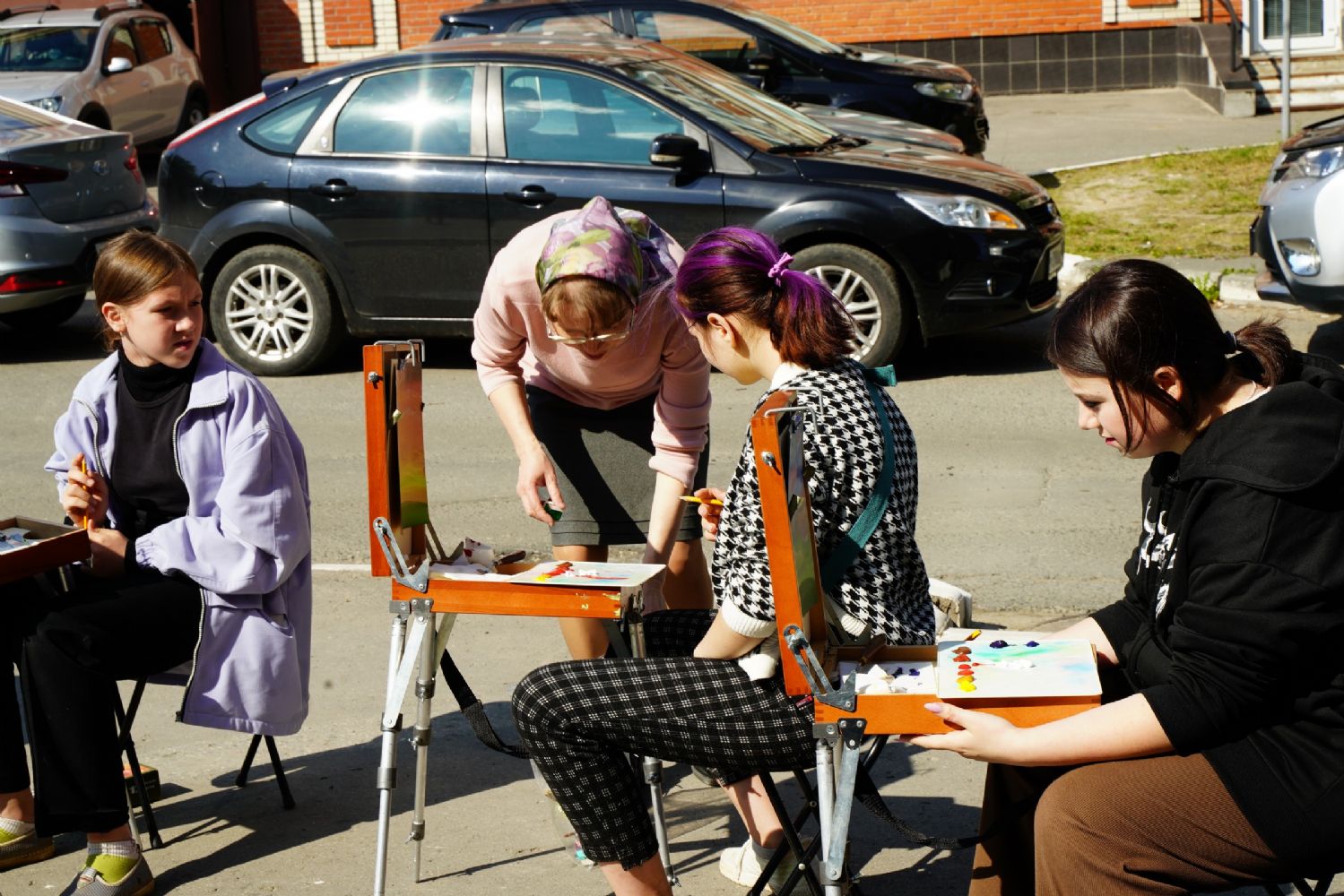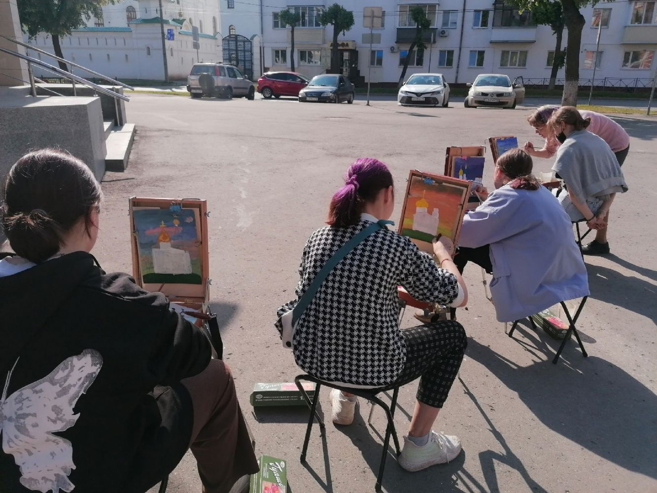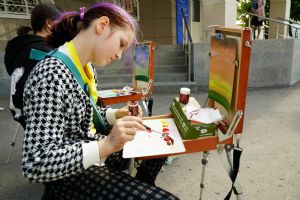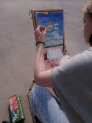 После экскурсии под руководством педагога Детской художественной школы №1 г. Йошкар-Олы Клюкиной Марии Юрьевны было проведено занятие по рисованию на пленэре. Ребята рисовали на этюдниках вид возрождающегося монастыря, об истории которого только что узнали. Мария Юрьевна рассказала о принципах расположения красок на палитре, об устройстве Православного храма. Все это пригодилось детям при работе.