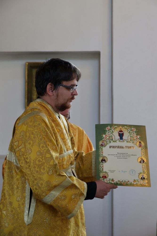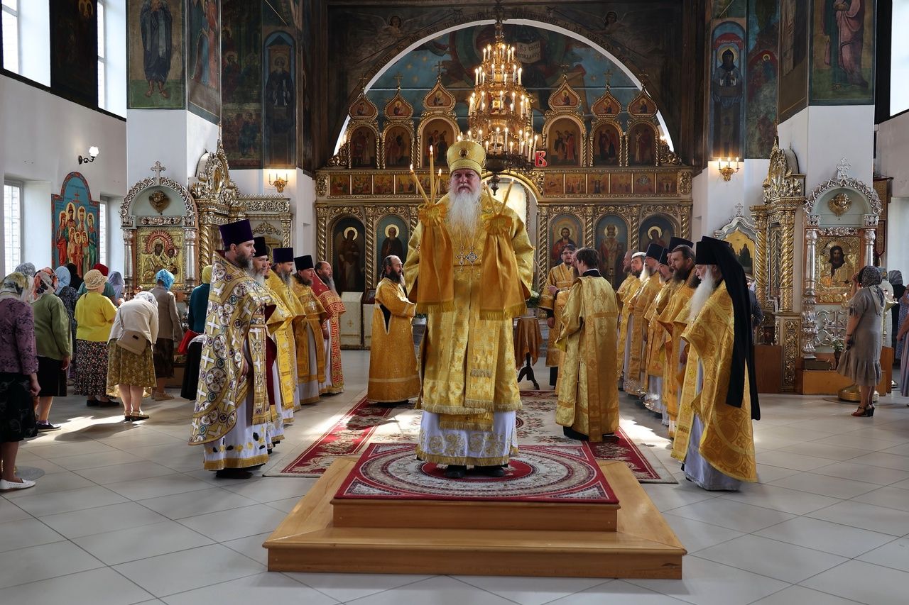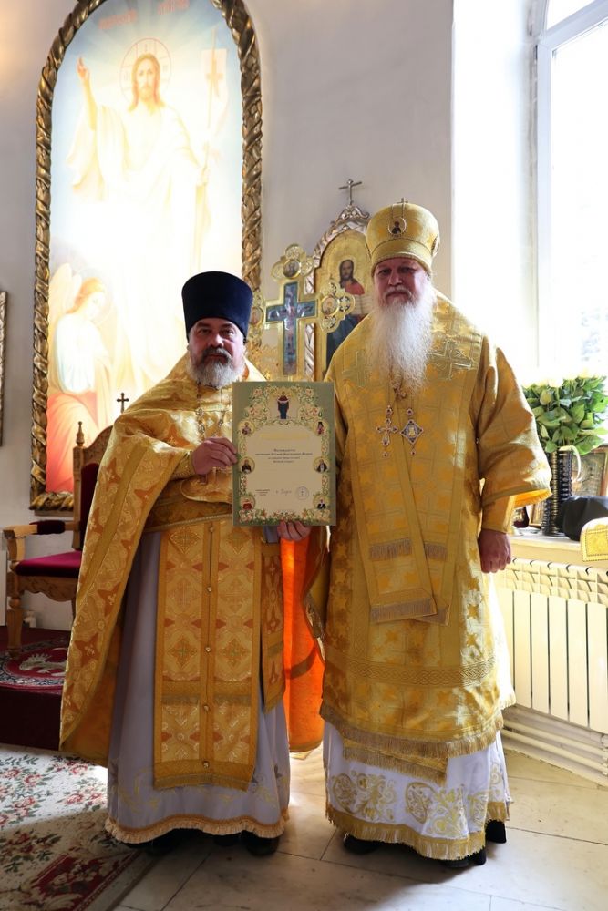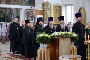Его Преосвященству сослужил сонм священников, съехавшихся со всех концов епархии, чтобы поздравить архипастыря. Песнопения исполнял хор собора под управлением Нины Коноваловой и детско-юношеский хор под руководством Марии Захаровой.