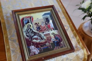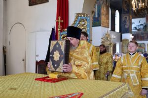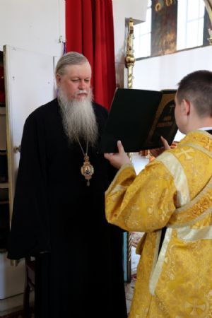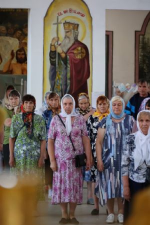 По завершении богослужения было совершено славление перед иконой Крестителя Господня Иоанна, после чего владыка Феофан обратился к собравшимся с проповедью, напомнив евангельские события рождения Иоанна Предтечи от престарелых благочестивых родителей Захарии и Елисаветы.