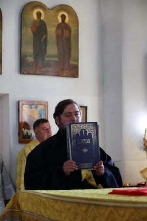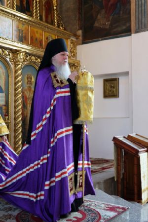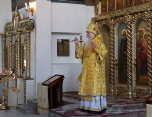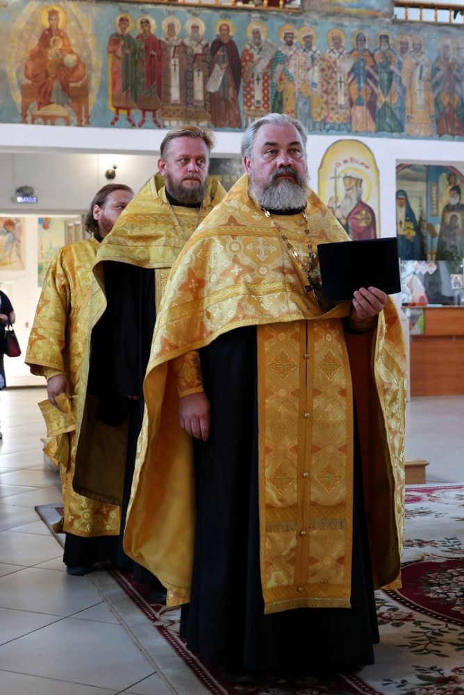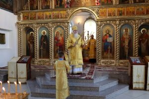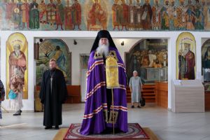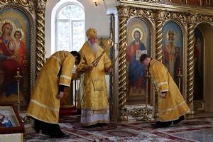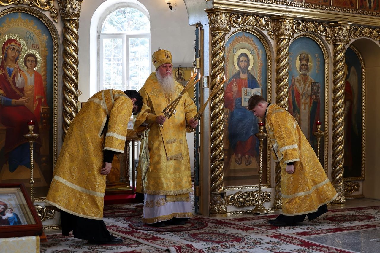 Архипастырю сослужили клирики собора. Песнопения исполнял хор собора.