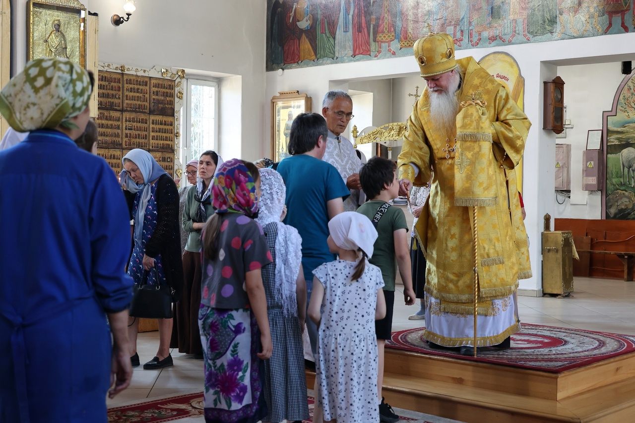 7 июля, в праздник Рождества честного славного Пророка, Предтечи и Крестителя Господня Иоанна, епископ Волжский и Сернурский Феофан совершил Божественную литургию, а накануне вечером – всенощное бдение в Никольском кафедральном соборе г. Волжска.